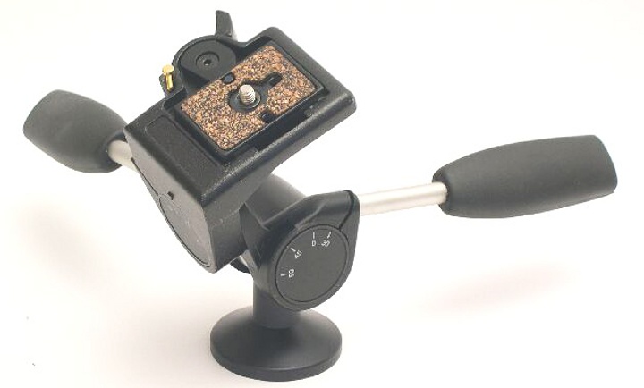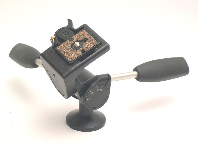 Durch seine Stabilität kann er mit Geräten mit bis zu 4-5kg Eigengewicht, also auch mit schweren Kameras und längeren Teleobjektiven, bestückt werden. Natürlich ist er auch mit kleineren astronomischen Teleskopen oder Spektiven sowie Ferngläsern zu verwenden, dies ist jedoch nicht der eigentliche Einsatzzweck eines 3D-Kopfes.