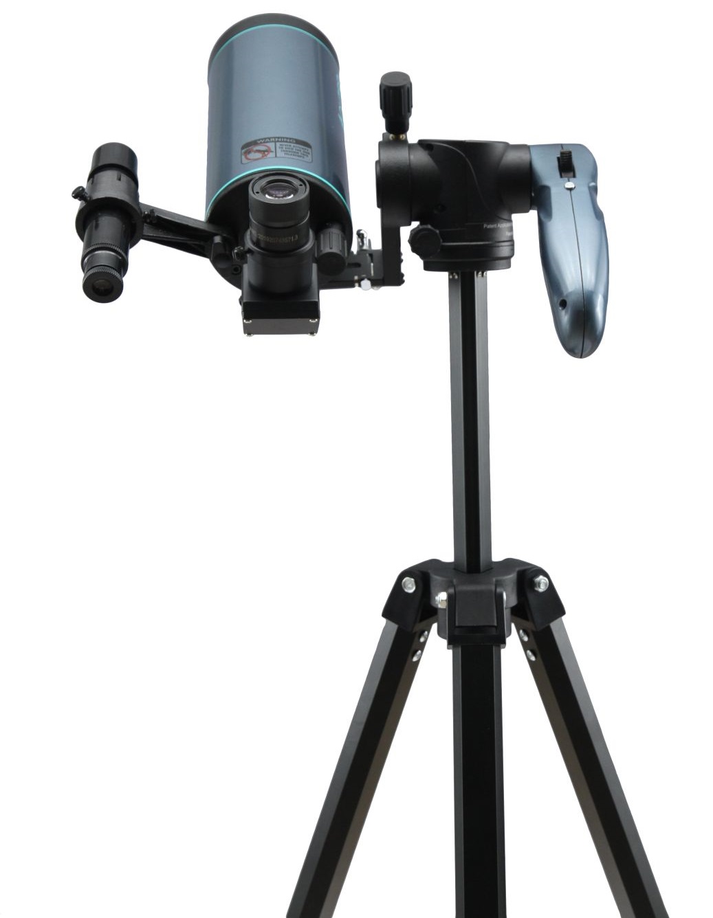 Das Teleskop selbst ist sehr kompakt, der Tubus ist lediglich 26cm lang, ideal zum Transport und wenn der Platz knapp ist. Maksutov Cassegrains liefern ein sehr gutes, kontrastreiches Bild, das zudem frei von Farbfehlern ist! Zwei Okulare gehören zum Lieferumfang, man erreicht damit 50- und 100-fache Vergrößerung. Erstere ist gut um Himmelsobjekte aufzufinden oder um die Landschaft zu beobachten, letztere eignet sich schon gut, um feine Einzelheiten am Mond oder den Planeten zu sehen, z.B. die Phasen der Venus oder die Wolkenbänder des Jupiter. Mit optionalen Okularen kann die Vergrößerung auf bis zu 140-fach ausgebaut werden. Ein Zenitspiegel wird natürlich ebenso mitgeliefert, er ermöglicht die bequeme Beobachtung auch von hoch stehenden Himmelsobjekten.