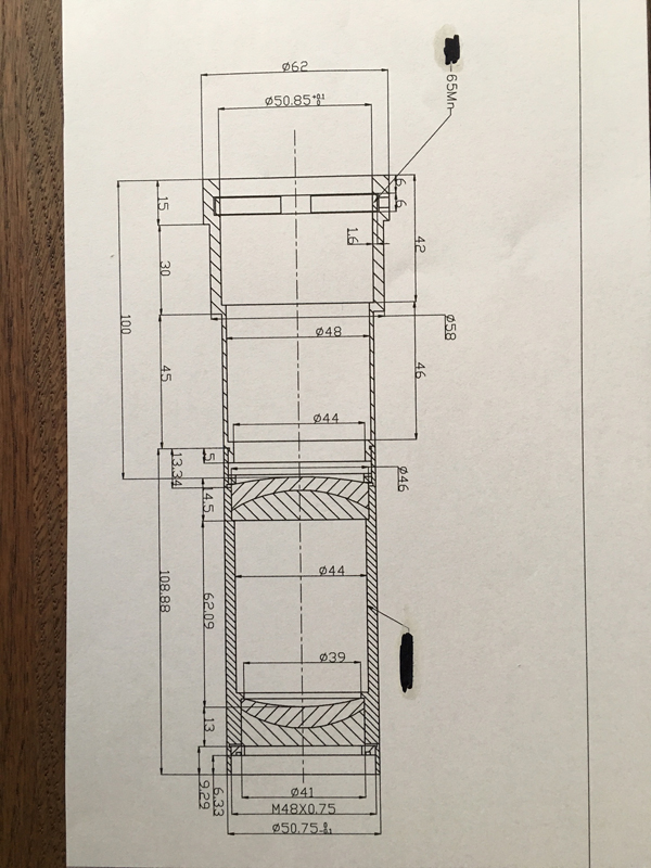 So erhält man den korrekten Abstand und Anschluss für die 55mm Auflagemaß einer DSLR + Bajonettadapter.