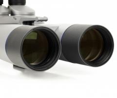 Dieses sphärisch und chromatisch sehr gut korrigierte 2-linsige FCD SD-Fernglas bietet Ihnen einen extrem hohen Kontrast. Der 90° Einblick sowie die 1,25" Okularhülsen machen dieses Glas sehr universell nutzbar. Die 90°-Variante ist gerade auch bei hoch stehenden astronomischen Objekten interessant. Sie können die Vergrößerung durch Wechseln von Okularsätzen verändern. Die Fokuslage wurde so gewählt, dass Tele Vue Delos, Nagler, Panoptik, sowie das Docter 12,5 mm UWA Okular fokussiert werden können. Dieses Modell ist auch mit 45° Einblick erhältlich.