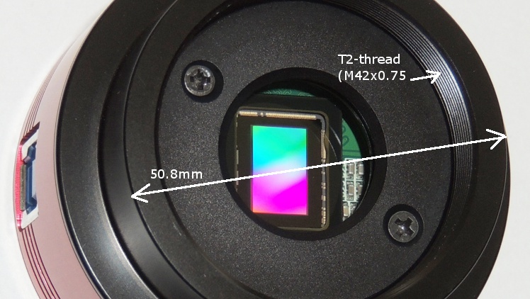 Das Gehäuse ist mit einem T2 Gewinde ausgestattet, eine Adaptation auf 1,25" bzw. 2" Steck ist möglich.