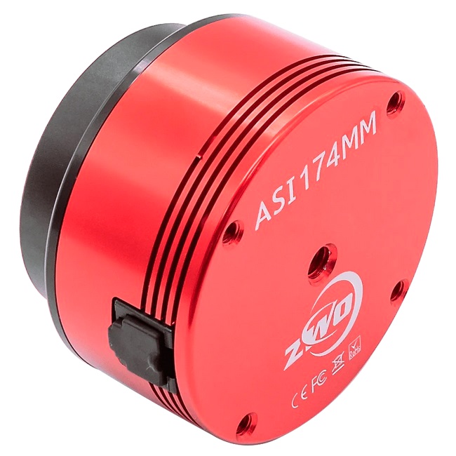 ASI174 Kamera mit einem 1/1,2" CMOS-Sensor und mit 2,3 MPixel (1936x1216 Pixel) Auflösung. Durch die grössere Chipfläche, als auch durch die grössere Pixelgröße, als bei der ASI-120 Serie, erhält man ein größeres Feld und mehr Empfindlichkeit. Das Rauschen vom IMX174LLJ Chip ist sehr niedrig - obwohl es sich hier um eine ungekühlte Kamera handelt. Wir empfehlen die Kamera überall, wo Schnelligkeit, Empfindlichkeit und moderate Feldgröße benötigt wird: vor allem für Mond-, Sonne- und Planetenfotografie, aber auch für kompakte Deep Sky Objekte.