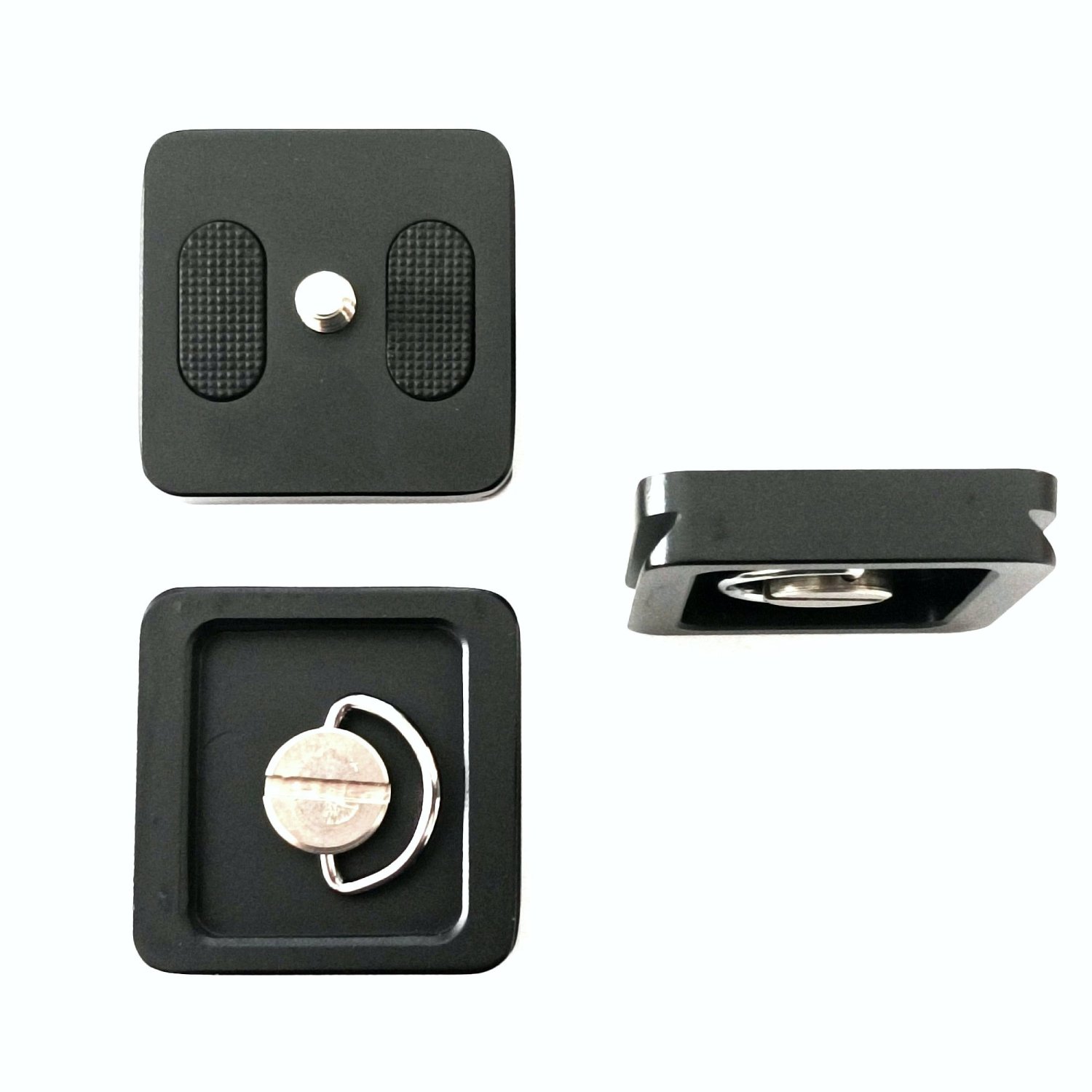In diesem Set sind drei Platten enthalten, man kann die Platten an den Geräten (Kameras, Ferngläser, Spektive, Handyhalterungen, usw...) belassen und spart sich das ummontieren. Zwei Gummi-Flächen sorgen für einen sicheren Halt, die Schraube kann entweder per Hand mit umklappbaren Metallbügel, oder mit einem großen Schlitzschraubendreher befestigt werden.