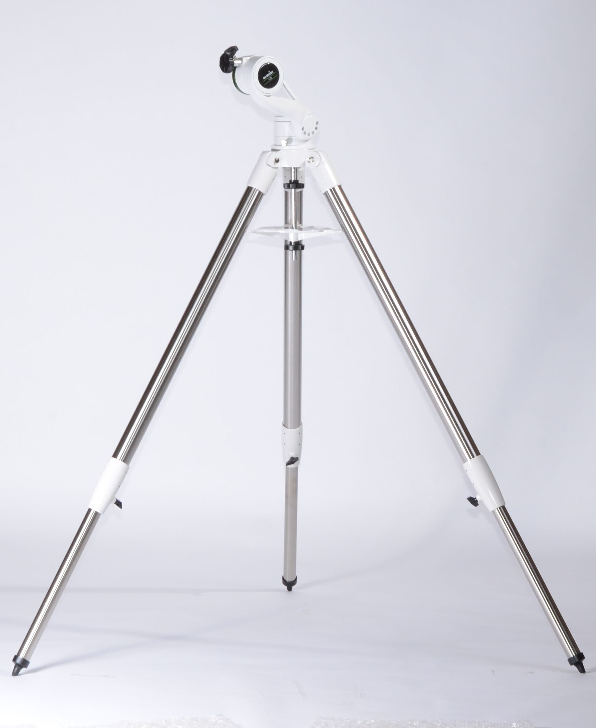 Die AZ5 besteht aus dem Einarm Kopf mit Vixenklemme und Feintrieben in beiden Achsen, sie ist auf einem stabilen Edelstahl-Stativ montiert, dies entspricht dem EQ5-Stativ, es ist jedoch ohne Nord-Dorn ausgeführt.