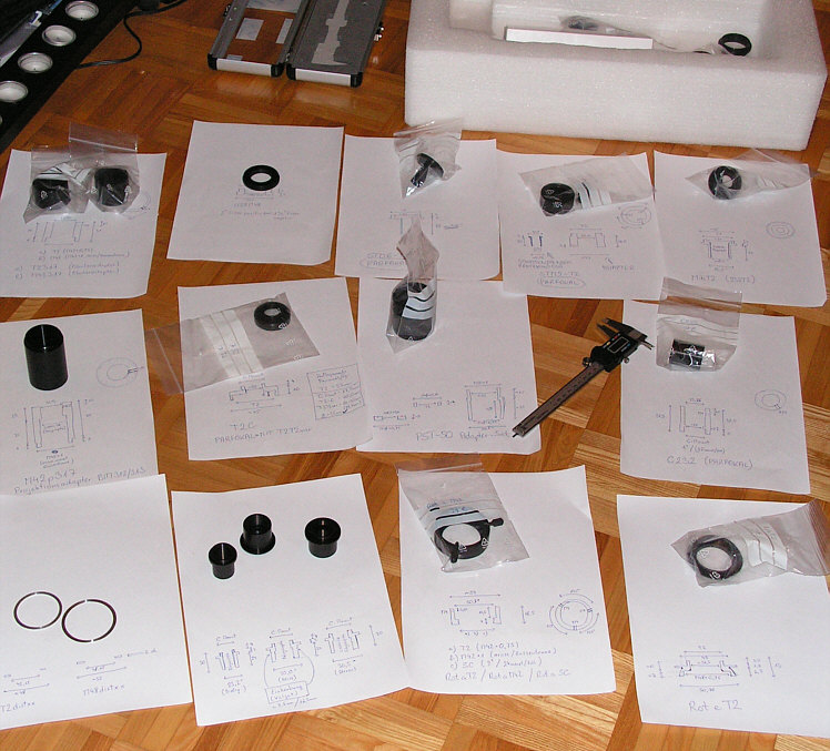 Wir bieten Einzelanfertigungen für alle Bereiche der Astronomie und Mikroskopie an. Feinmechanische Arbeiten, Adapterringe, Zoll-Gewinde, Schienen, Stative, Säulen, und vieles mehr. Ein gutes Beispiel ist z.B. der TAL-Crayford Adapter: Der Adapter ist zweiteilig, da sonst das Klevtzov wegen d. Crayford nicht mehr in die original Holzkiste passt. Den Adapter kann man auch justieren (mit 4 Schrauben verkippbar) undermöglicht den Zugang zu allen Justierschrauben. Auch die Fokussierbarkeit bleibt erhalten (ohne Zenitspiegel).