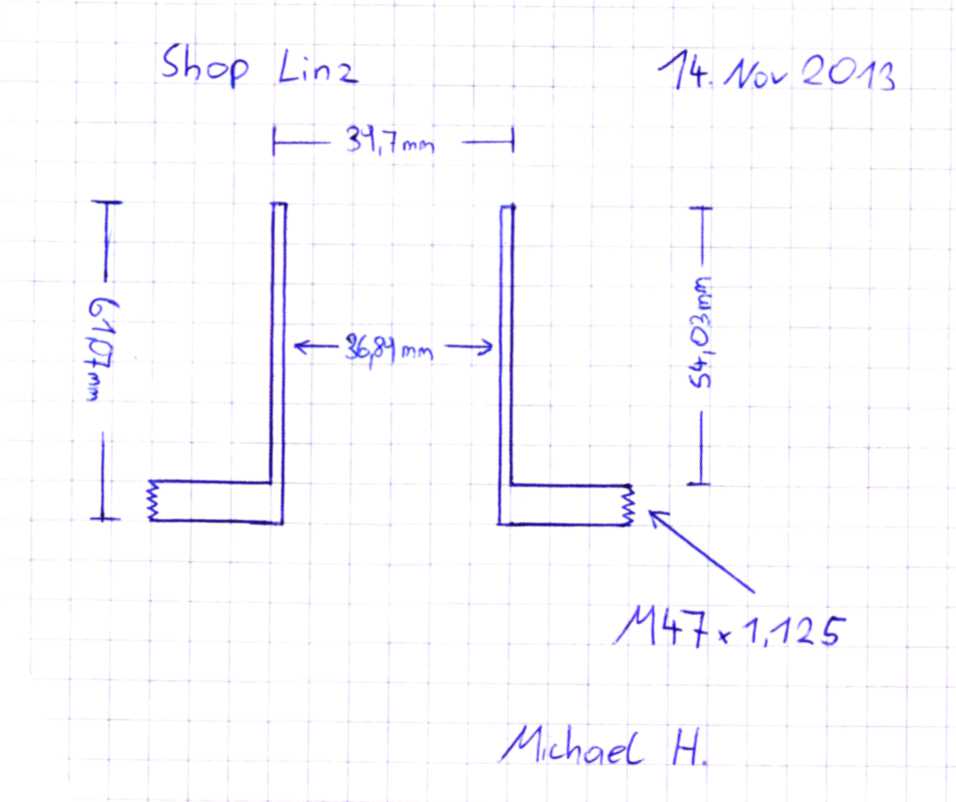 - Zeichnung und Planung: Korrektur kostenlos, wenn bei der Bestellung genaue Massangaben und Zeichnung vorliegen - eine Skizze reicht, wo aber alle Daten EINDEUTIG vermerkt sind. (ACHTUNG: falls die Zeichnung von uns erstellt sein muss, kostet das mindestens 75 Euro/Adapter - per Vorkasse) Vorgefertigte Roh-Skizzen finden Sie unten beim SUPPORT.