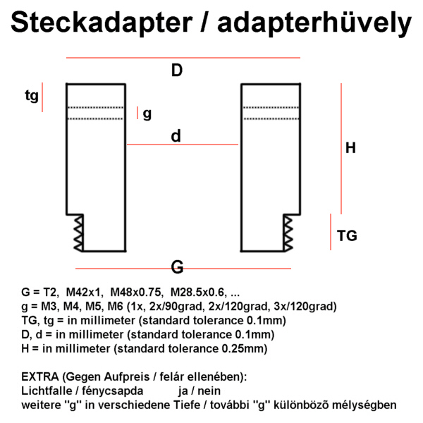 - Zusätzliches Gewinde je 5 Euro (bis 10mm Länge)