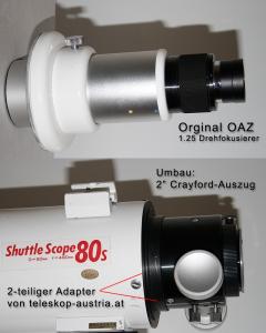Kundenzitat aus Deutschland (Th. Kraus): Mittlerweile ist es schon der 3. Adapter, den ich bei teleskop-austria.at anfertigen ließ. Auch bei dieser Anfertigung - einer 80mm FH-Linsenfassung - hat mal wieder alles maßgenau gepasst. Perfekt - sogar mit O-Ring ünd Madenschrauben zur Linsenklemmung. Sehr positiv empfand ich auch die Rückmeldung mit Verbesserungsvorschlag zum lichten Öffnungsdurchmesser. Hier wird mitgedacht !!! Der Preis passt ebenfalls, man bekommt hier maßgeschneiderte Adapterlösungen, welche wirklich bezahlbar sind - warum noch Adapter von der Stange kaufen -:).