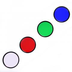 Ein LRGB Filterset ermöglicht es, mit einer monochromen Kamera die Farbkanäle einzeln zu erfassen. Gute LRGB Filtersets haben steile Flanken bei den Transmissionskurven (keine Halos) und optimal gewählte Durchlassgrenzen. Die Wellenlängen der B und G Kanäle überlappen sich im Bereich der OIII Linie, aber sparen die Lichtverschmutzung durch die Na und Hg Linien zwischen G und R aus.