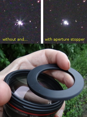 Viele Fotoobjektive auch von erstklassigen Herstellern haben kleine Fehler in der Sternabbildung am Rand, welche durch moderates Abblenden gut beseitigt werden können. Aber die im Objektiv eingebaute Irisblende verursacht wegen der geraden Kanten der Lamellen dable Beugungserscheinungen, welche besonders bei langbelichteten und tief ausgearbeiteten Bildern heftig in Erscheinung treten. Eine probate Abhilfe ist eine vor dem Objektiv liegende Ausssenblende anzubringen, welche aber eine sehr regelmässig rund geformte Öffnung haben muss.