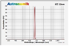 Der SII-CCD Filter erhöht den Kontrast zwischen SII-Regionen und dem Himmelshintergrund. Durch die schmale Halbwertsbreite bei gleichzeitig hoher Transmission von nehezu 100% im Bereich der SII Linie erreicht der Filter eine wesentlich größere Kontraststeigerung als breitbandigere Filter. Die Halbwertsbreite von 12nm ist optimal auf die Verwendung von typischen CCD und CMOS Sensoren abgestimmt.