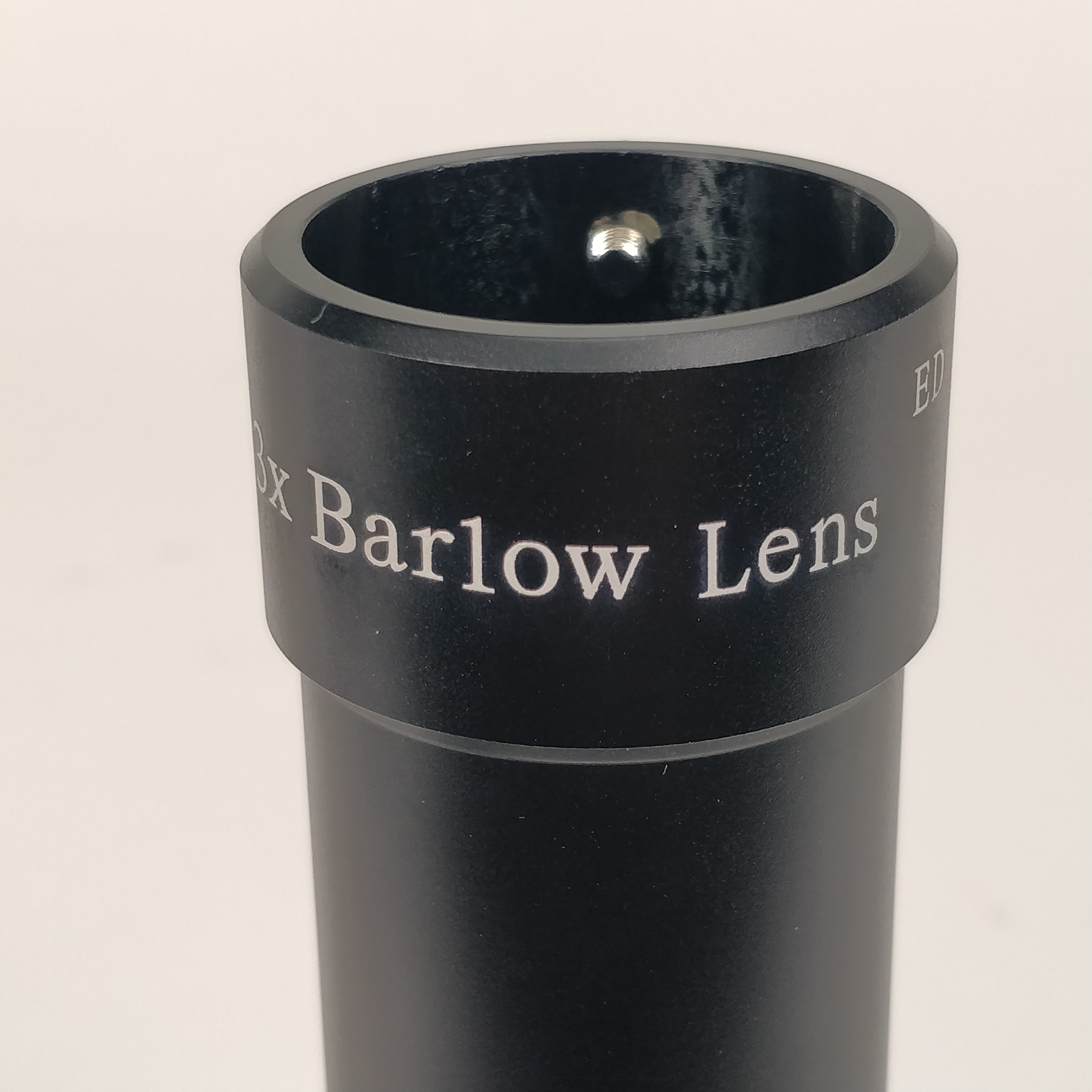 Dank ED-Glas kann die Barlow-Linse mit stärkerer Krümmung gebaut werden, so dass sich das Barlow nur 45mm tief ins Okularauszug versinkt. Mit seinem 14mm freien Durchlass,
