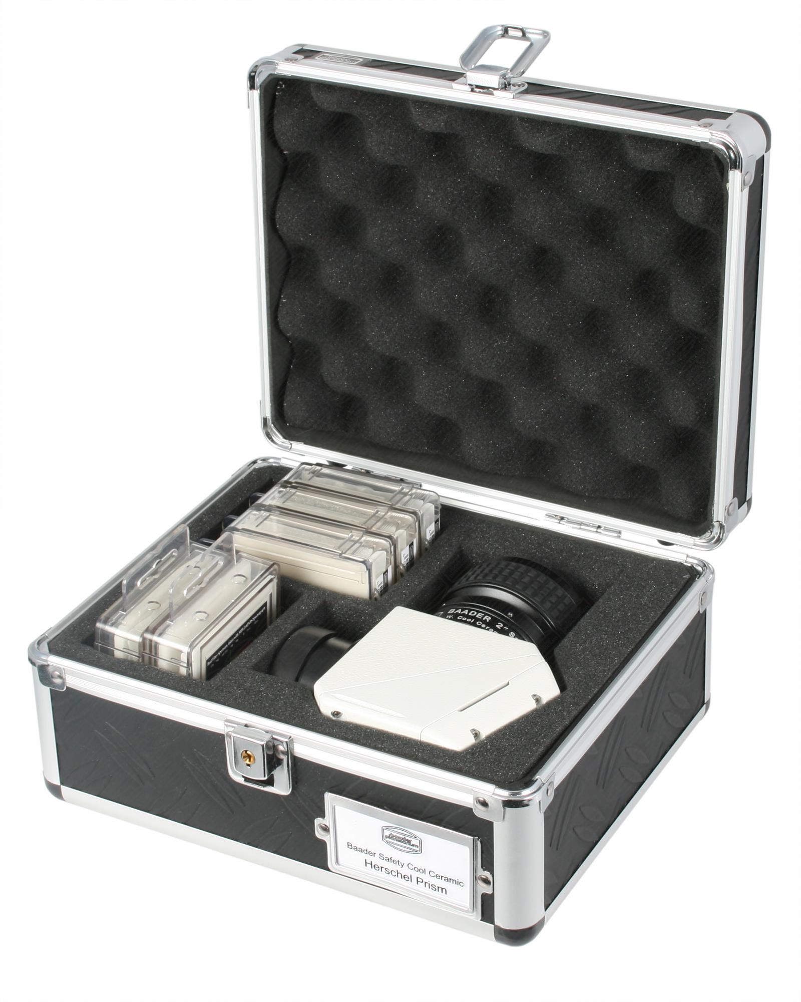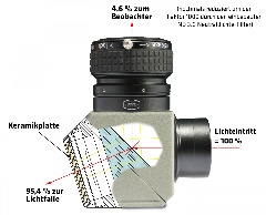 Herschelprismen müssen immer mit zusätzlichen Lichtdämpfungsfiltern betrieben werden. Die vom Prisma zum Okular reflektierte Energie ist noch um den Faktor 1000 zu hoch. Aus diesem Grund bieten wir unsere Sicherheits-Herschelprismen nur mit eingebautem ND 3.0 Dämpfungsfilter an. Die fotografische Version beinhaltet noch weitere ND-Filter zur selektiven Lichtdämpfung. Bitte nur mit größter Vorsicht verwenden.