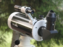 Vor allem Sonne, Mond, Doppelsterne, Saturn (Cassini Teilung ab 5" gut erkennbar!), Mars (Polkappen) und die feinen Details am Jupiter (Wolkenbänder aber auch die Jupiter-Sonnenfinsternisse) sind in Reichweite des Gerätes. Auch für Naturbeobachtung und Fotografie ab 100m Entfernung geeignet. Die empfohlene maximale visuelle Vergrößerung liegt bei 250-fach. Die Schärfeeinstellung erfolgt (wie üblich bei Maksutovs) durch Verstellen des Hauptspiegels. Sie haben auch keine Probleme mit der Adaption von Binokularansätzen, die Schärfe wird immer erreicht. Dabei ist die Mechanik sehr solide - es entsteht kein störendes Shifting (Sternversatz beim Scharfstellen). Das Gerät hat bereits einen 2“ Okularanschluss, somit ist auch die Verwendung von 2“ Okularen möglich, mit denen man deutlich größere Sehfelder erreichen kann.