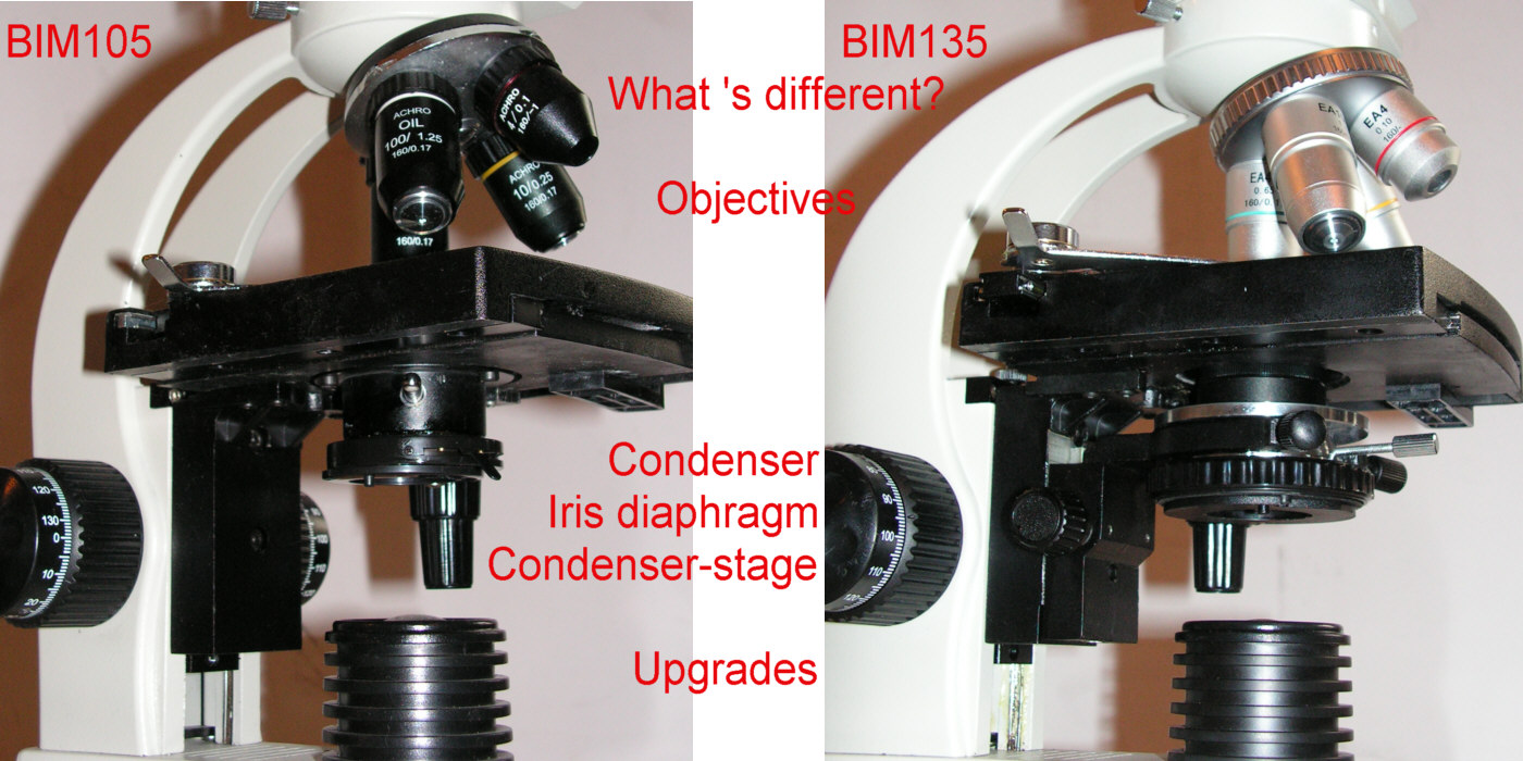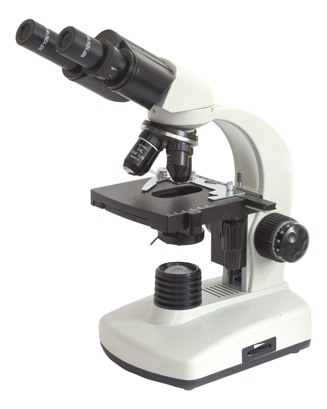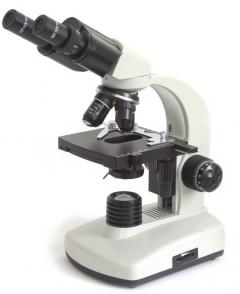 Sehr gutes Einsteiger-Mikroskop in gehobener Qualität, mit einfacher Bedienung und mit binokularem Einblick.  Der Binokularkopf macht entspanntes Beobachten mit zwei Augen auch für längere Zeit möglich. Das Mikroskop hat bereits einen Grob- und Feintrieb, einen Vierfach-Objektivrevolver mit 4x, 10x, 40x und 100x (Ölimmersion) vergrößernden, achromatischen Objektiven, Kreuztisch (Trieb für Rechtshänder) und  Weitfeld-Kellner-Okulare (10x). Die Lichtstärke kann gedimmt werden.  Für die optimale Ausleuchtung sorgt ein Abbe-Kondensor (N.A.=1,25), der fix verbaut, aber in der Höhe verstellbar ist.