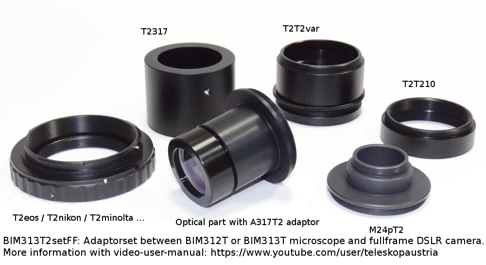 Komplett Adapterset für BIM312T/BIM313T Mikroskop zur Fullframe DSLR Kamera: M24pT2, T2T2var, T2T210, T2317, A317T2, Optische Einheit und ein T2-DSLR Adapter nach Wahl