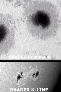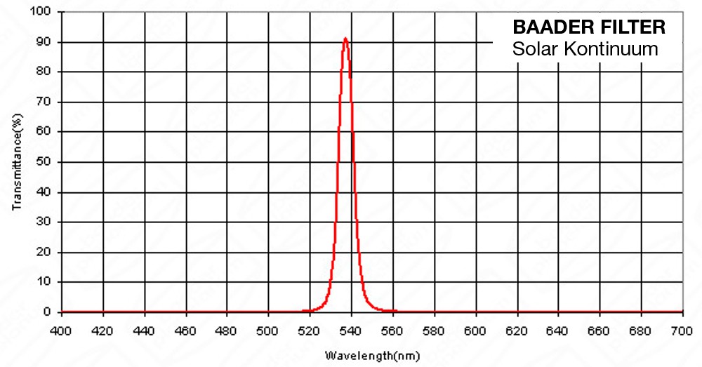 Der Baader Solar Continuum Filter ist praktisch ein Schmalband-Photosphärenfilter für die Sonnenbeobachtung im Weißlicht. Er sorgt für höchsten Kontrast bei der Beobachtung der Photosphäre. Er funktioniert wie ein Monochromator: Er unterdrückt die Effekte der atmosphärischen Turbulenzen und ermöglicht somit Bilder, die deutlich schärfer werden.