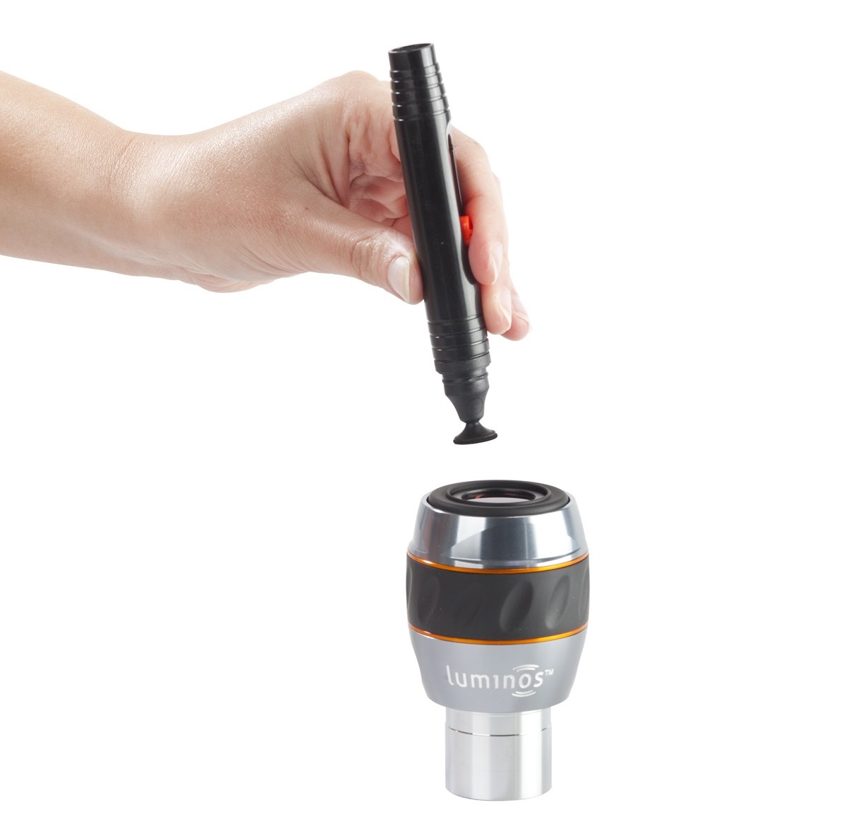 • Ein moderner Reinigungsstift für alle kleineren optischen Flächen wie Okularlinsen, Fernglasobjektive, Filter usw.