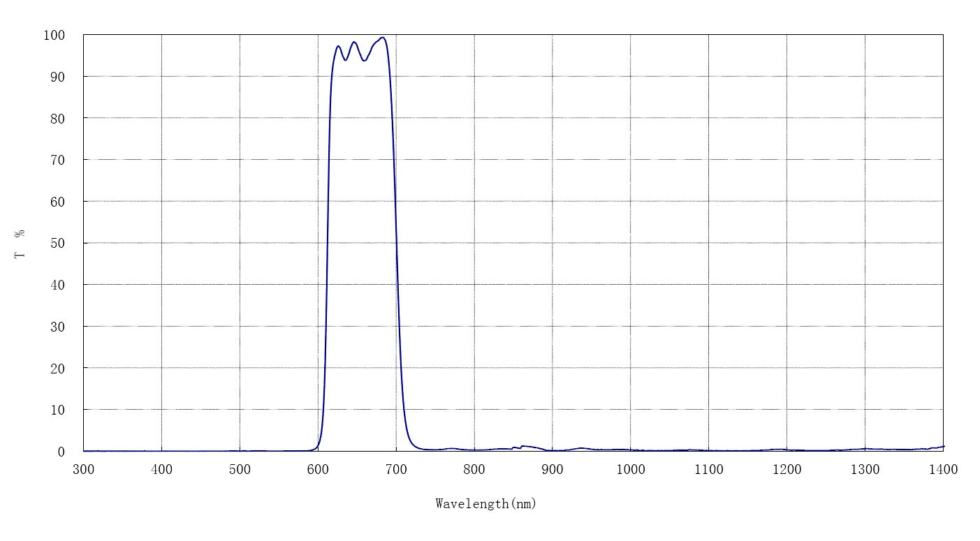 -- blockt UV und IR vollständig, das Durchlassfenster ist ca. 600-700nm