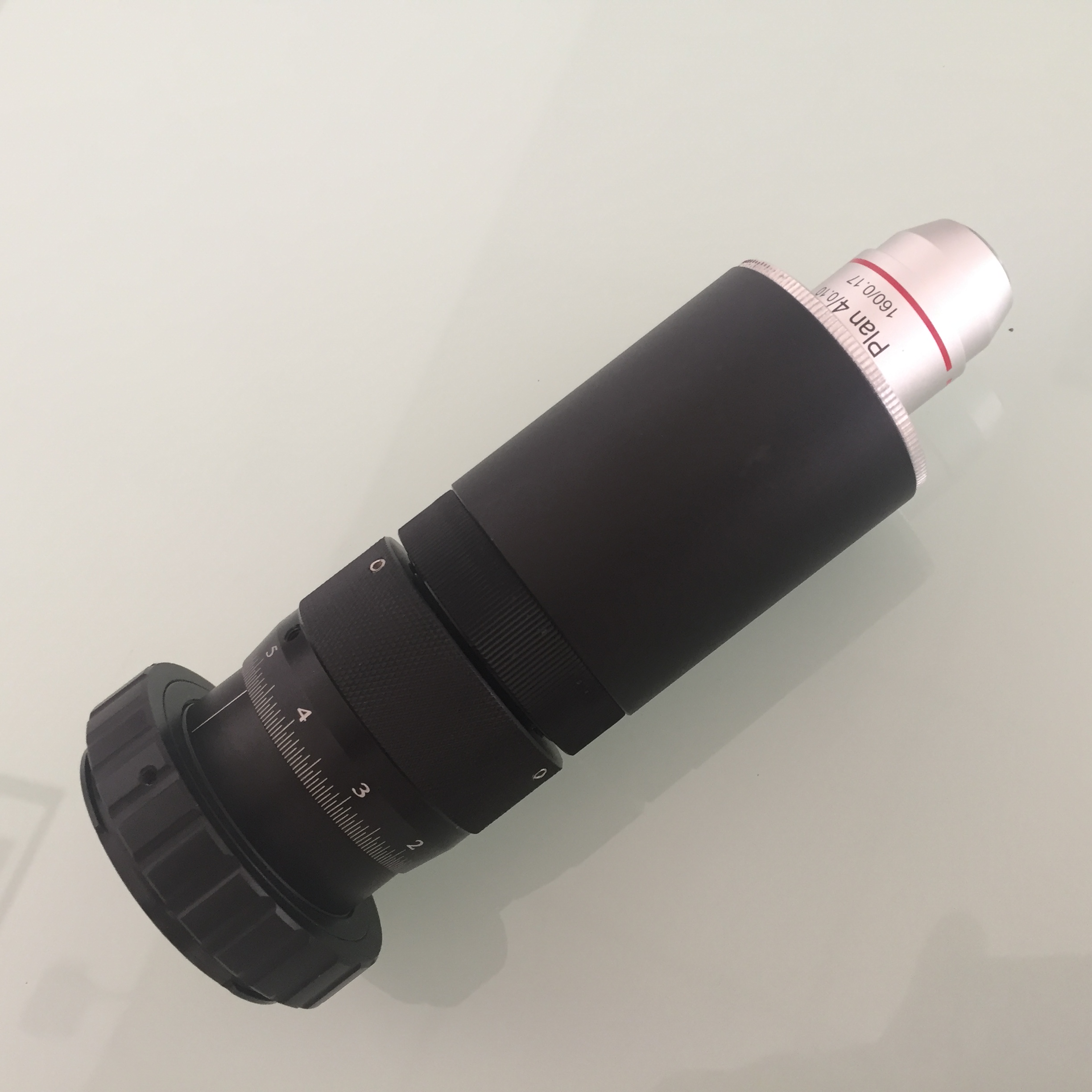 Unser DSLR Adaptation besteht aus einem Spezial-Adapter (Hergestellt in Ungarn / EU), welche das Mikroskopobjektiv mit RMS Gewinde (es ist eine Zollgewinde mit 0,8 inch Durchmesser und 36 Gewindesteigung pro inch. RMS steht für Royal Microscope Society) aufnimmt. Weiters eine Verlängerung mit Fokussiereinheit, welche exakt plus-minus 5 mm Verstellweg ermöglicht. Am Ende der Adaptergruppe ist ein Bajonett für Ihre DSLR Kamera.