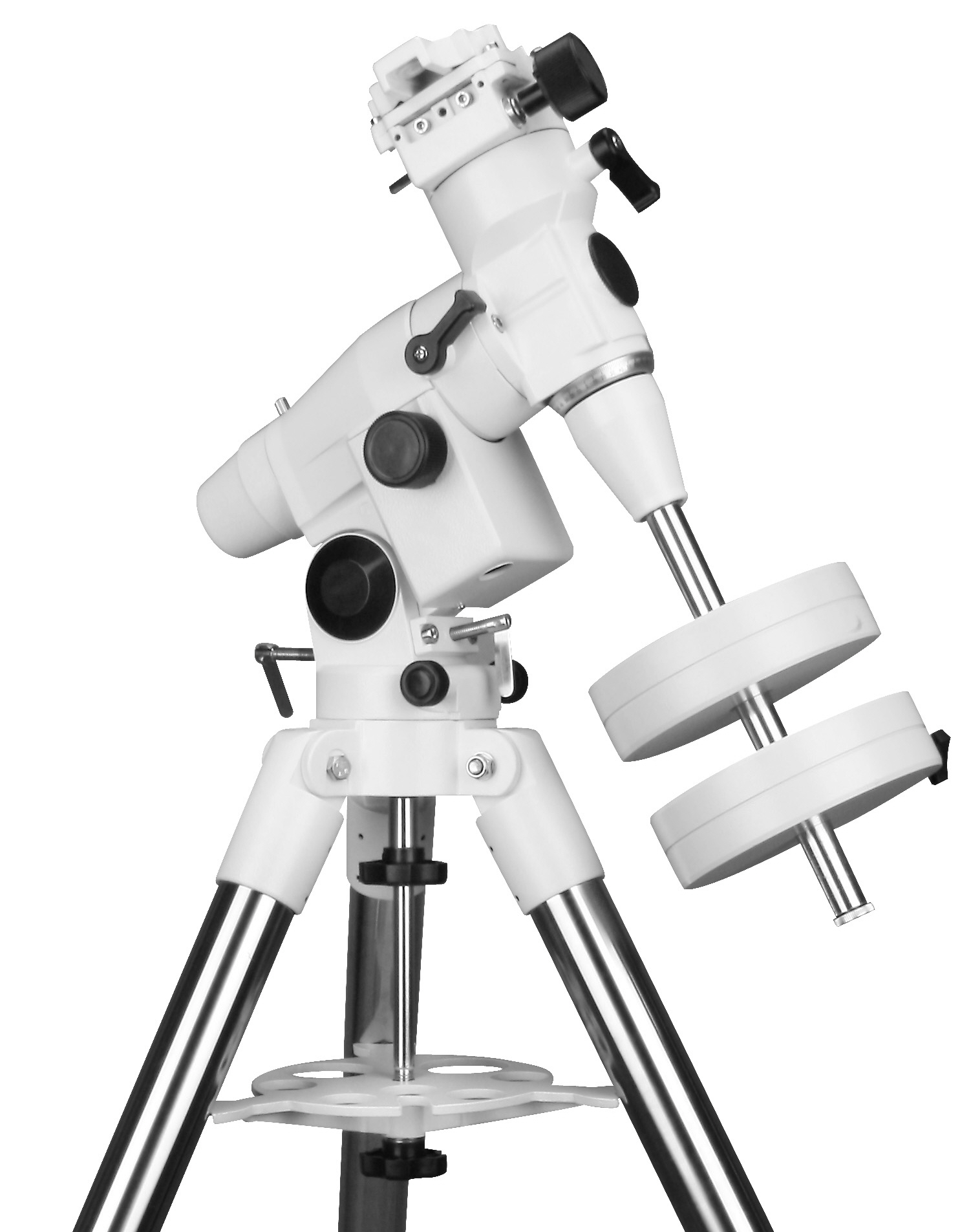 Mit dieser Montierung sprechen wir den ambitionierten Hobbyastronomewn an, der sowohl visuell als auch astrofotografisch tätig sein möchte und dabei nicht auf große Teleskope verzichten will. Deshalb liefern wir diese Montierung bereits mit einem ähnlich großen Stativ, das auch die EQ-6 trägt. Wir sprechen hier von 45mm Stahlstativbeinen. Die kostengünstigste Montierung mit bestmöglichem Preis-leistungsvermögen im gesamten Astrozirkus. Für alle jene, die ihre Teleskope (bis C 8, 200mm kurze Newtons und 5" Refraktoren) stabil und fototauglich montieren wollen, ist diese Montierung gedacht.