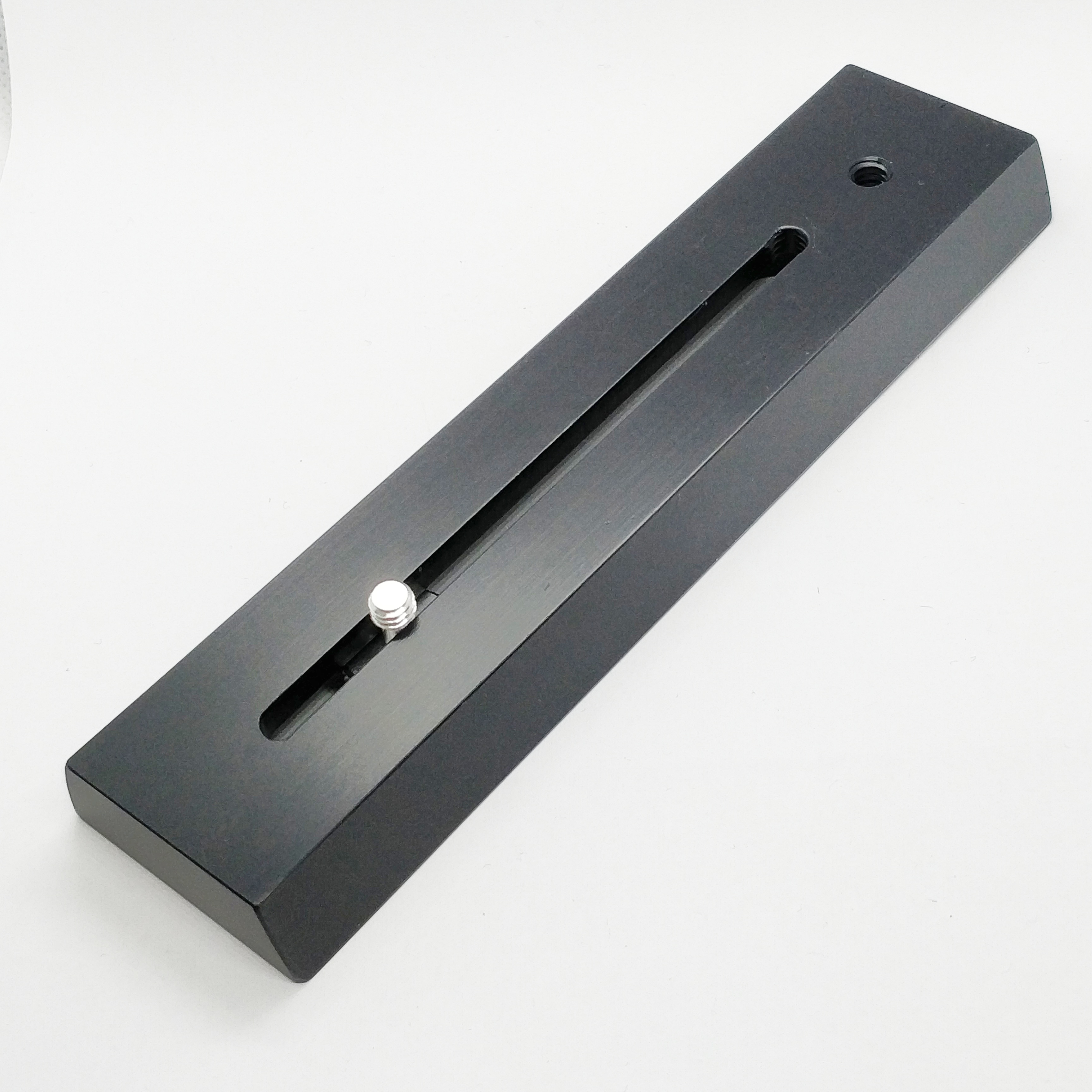 Mit diesem Zubehör ist es möglich, eine Montierung schnell und einfach zu einem Stativ für Fotoapparate umzubauen. In die Prismenschiene ist eine Schraube mit 1/4 Zoll eingeschraubt, auf dieser kann man eine Kamera befestigen. Die Schraube hat einen Hals ohne Gewinde, daher kann sie innerhalb der Schiene im Langloch bewegt werden. Sie lässt sich leicht mit einer Münze (z.B. 20 Cent) befestigen, es ist also kein spezielles Werkzeug nötig.