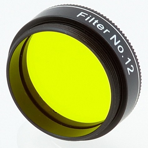 Gelb: ab 80mm, hebt den Kontrast am Mond, bringt Oberflächendetails und Wolken am Mars heraus, stärkt auch Atmosphärenstrukturen am Jupiter (großer roter Fleck..) Gut für Doppelsternbeobachtungen mit Refraktoren.