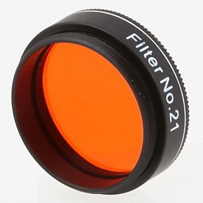Orange: ab 80mm, stärkt den Kontrast bei Tages- oder Dämmerungsbeobachtungen (Venus,Merkur...) da er das Blau unterdrückt. Bringt Details am Mars hervor. Am Jupiter und Saturn werden Details in der Atmosphäre enthüllt. Mit größeren Öffnungen kann man versuchen, Atmosphärenstrukturen des Uranus zu beobachten.