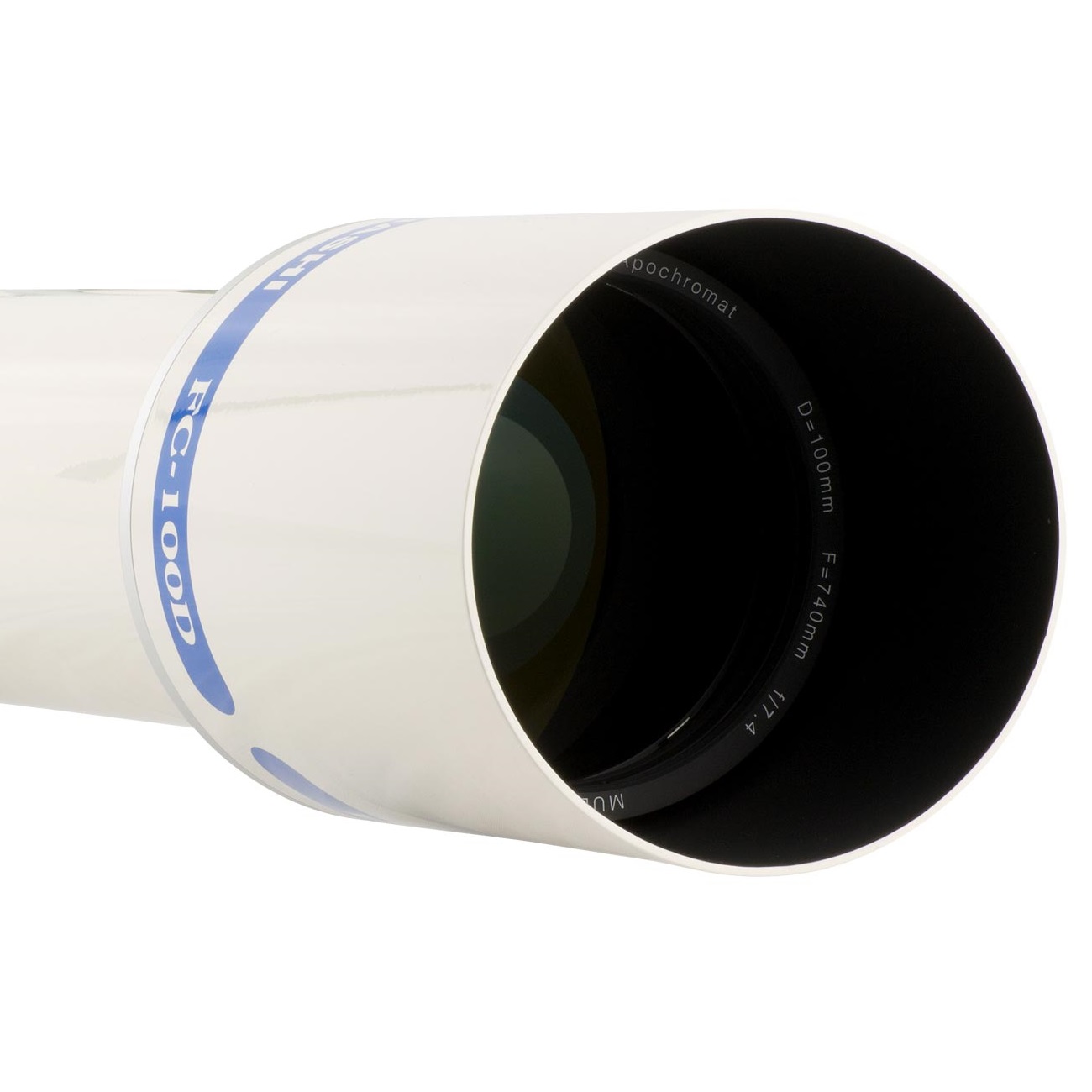 Der FC-100DC ist die Minimal-Lösung eines 4" Apos, er bietet keine teuren machanischen Extras, es wird z.B. der kleine Auszug des FC-76DC verwendet, die Taukappe lässt sich nicht einschieben. Dafür hat man ein hervorragendes Preis-Leistungs-Verhältnis, der Großteil der Anschaffungskosten fließt in die Optik, und die ist auf höchstem Niveau. Eine der beiden Linsen besteht aus Fluorit (CaF2), bei den FC-Geräten ist es die innenliegende, im Vergleich zum alten Modell konnte die Farbreinheit nochmals etwas verbessert werden, obwohl die Neuauflage eine kürzere Brennweite hat. Das Fluorit-Objektiv liefert eine herausragende Bildqualität und ist Dank der zweilinsigen Bauart sehr leicht und kühlt schnell aus.