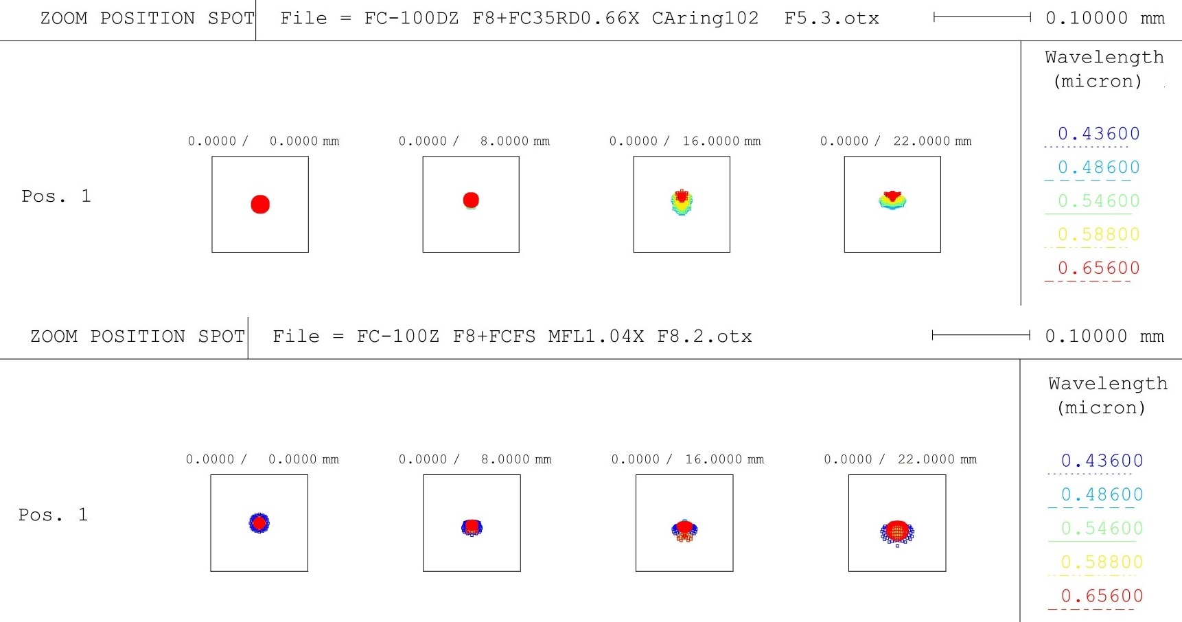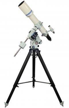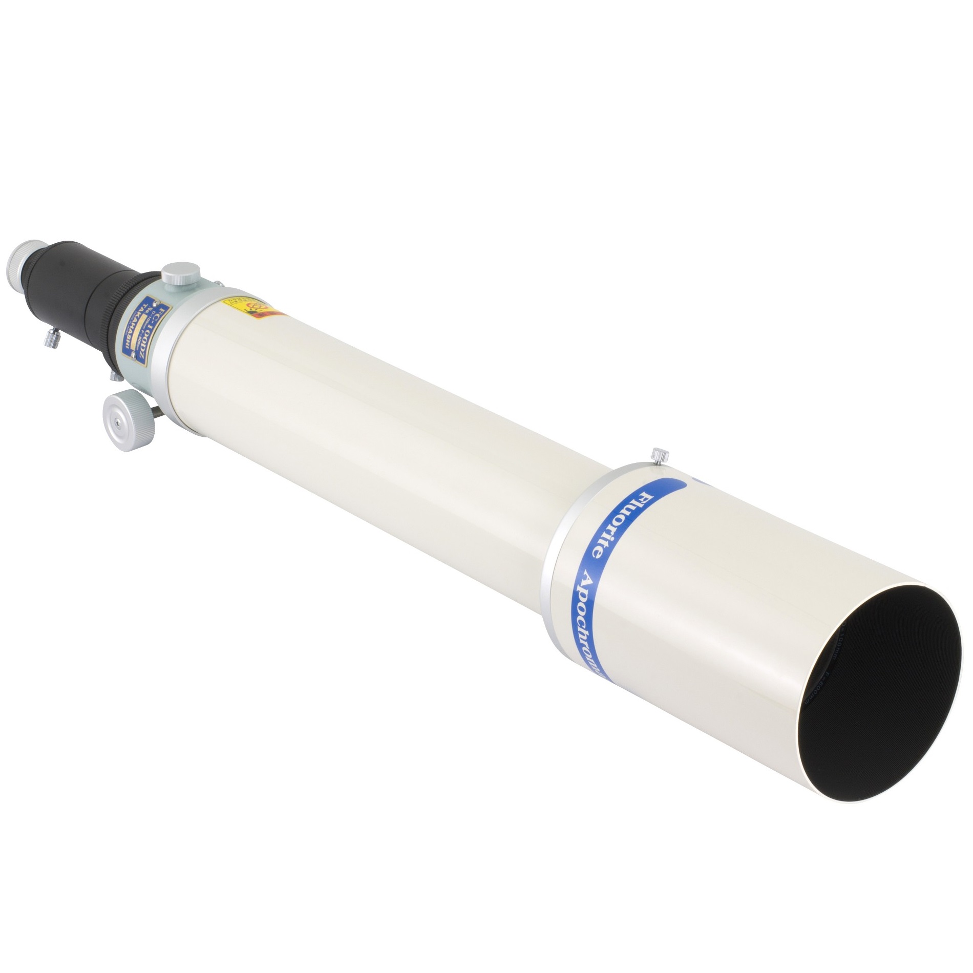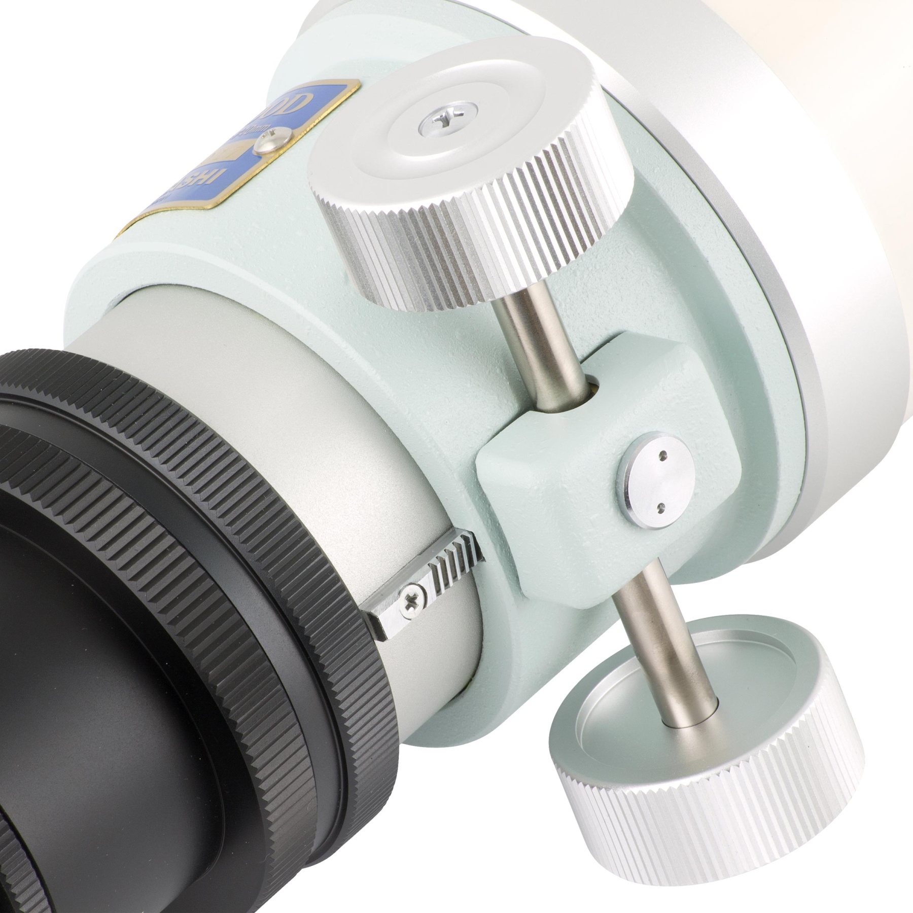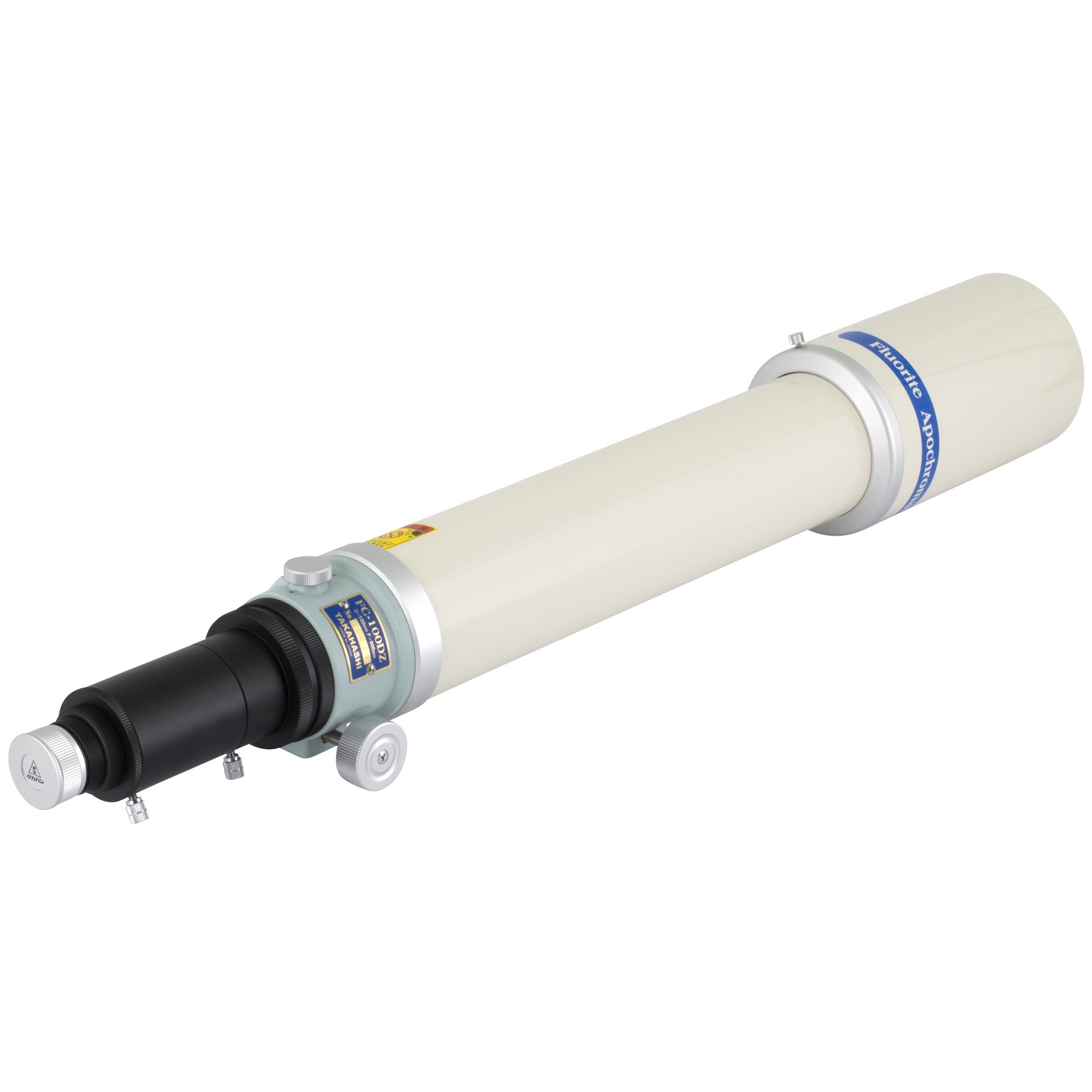 Der neue FC-100DZ erreicht Strehl-Werte von über 90% über das visuelle Spektrum von 460 – 670nm, mit einem Maximum von über 97% bei 560nm. Die Optik mir nur zwei Linsen ist sehr leicht, der Tubus wiegt nur 3,8kg, das Objektiv kühlt auch deutlich schneller aus als ein Triplett. Die Taukappe kann eingeschoben werden, die Transportlänge ist nur 76cm, nach Abschrauben der Okularadapter kann der Tubus bis auf 60cm gekürzt werden. Der Tubus ist mit 95mm Durchmesser sehr schlank, der Okularauszug misst 70mm, er kann mit der 1:7 Mikrountersetzung MEF-3 nachgerüstet werden.