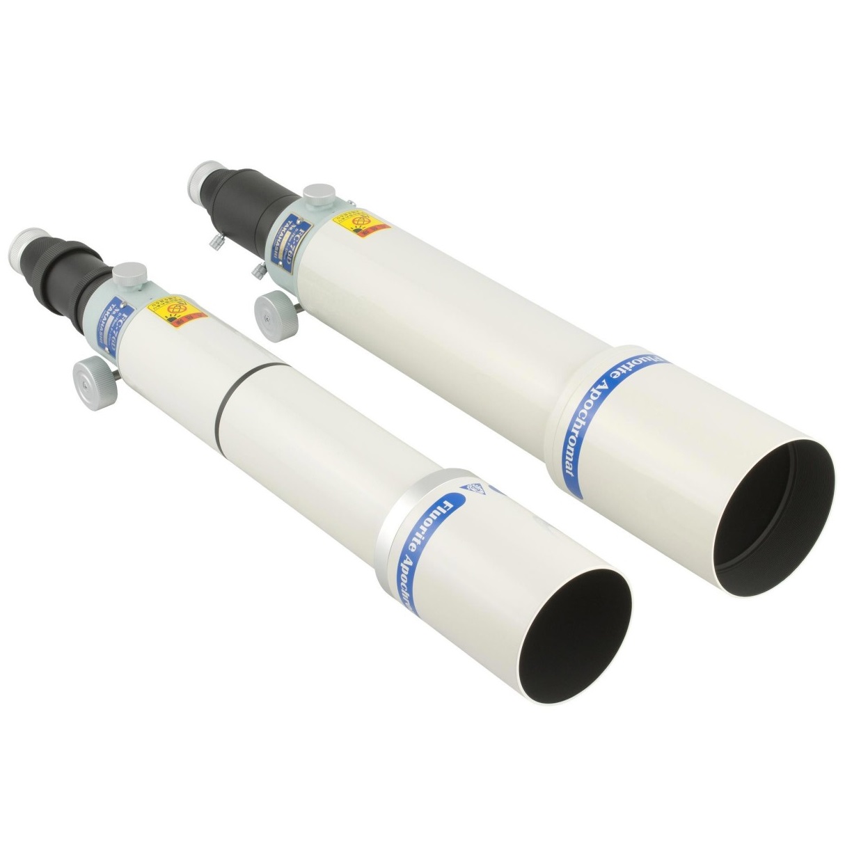Diese Geräte liefern eine herausragende Bildqualität und sind dank der zweilinsigen Bauart sehr leicht und kühlen schnell aus. Den FC76 gibt es in zwei Ausführungen, hier mit kleinen Tubus und Okularauszug des FS-60CB (FC-76DCU), oder auch mit großen Tubus und 2" Auszug (FC-76DS), letzteren empfehlen wir für fotografische Anwendungen. Der FC-76DC wurde vom Nachfolgemodell FC-76DCU abgelöst, die DCU-Version hat einen teilbaren Tubus, er kann in der Mitte auseinander geschraubt werden. Man hat so ein perfektes Reiseteleskop, das sich problemlos verstauen lässt, die beiden Hälften sind je rund 33cm lang. Natürlich gibt es für beide Geräte ein reichhaltiges Zubehörangebot mit Reducer, Flattener und Extender. Beide Varianten des FC-76D können mit der 1:8 Mikrountersetzung MEF-3 nachgerüstet werden.