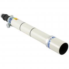 Die Verarbeitungsqualität ist makellos, der Tubus ist mit einem sehr widerstandsfähigen Lack in Cremeweiß lackiert, der Auszug in der neuen Hausfarbe hellblau. Er kann mit der 1:8 Mikrountersetzung MEF-3 nachgerüstet werden. Mit dem TKA21110 Adapter kann der Auszug auch mit einer 2 Zoll Okularklemme versehen werden.