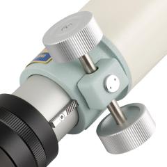 Auch mechanisch überzeugt dieses Gerät in jeder Hinsicht. Die Taukappe kann eingeschoben werden, schraubt man sie von ihrem Ring ab, kommt man von hinten an den äußeren Rand der Objektiv-Zelle, hier findet man die Justierschrauben (3x Zug- und 3x 2 Druckschrauben). Es ist sehr lobenswert, dass auch bei so kleinen Geräten eine Justier-Möglichkeit in der Konstruktion berücksichtigt wurde. Am Okularauszug hat man nun bereits werkseitig einen 2 Zoll Anschluss.