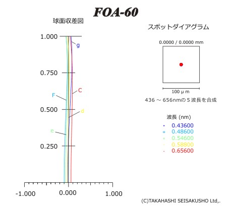 Takahashi setzt wieder verstärkt auf Fluorit Apochromaten, nach dem FC76D sowie dem DC100D, ist nun eine neue Optik mit 60mm erhältlich. Das optische Design ist jedoch ein anderes und verspricht eine noch bessere Korrektur und extrem hohen Strehl-Werten über das gesamte visuelle Spektrum. Die Frontlinse ist aus Fluorit, das zweite Element aus Kronglas, wie auch bei den beiden größeren TOA Modellen, hat der FOA-60 einen sehr großen Luftspalt. Mit diesem neuen Design, das hier erstmalig angewendet wurde, wurde ein 2-Linser geschaffen, der praktisch keine chromatischen Aberrationen erzeugt.