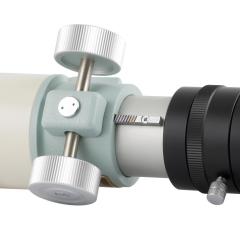 Auch mechanisch überzeugt dieses Gerät in jeder Hinsicht. Die Taukappe kann eingeschoben werden, schraubt man sie von ihrem Ring ab, kommt man von hinten an den äußeren Rand der Objektiv-Zelle, hier findet man die Justierschrauben (3x Zug- und 3x 2 Druckschrauben). Es ist sehr lobenswert, dass auch bei so kleinen Geräten eine Justier-Möglichkeit in der Konstruktion berücksichtigt wurde. Am Okularauszug hat man nun bereits werkseitig einen 2 Zoll Anschluss.