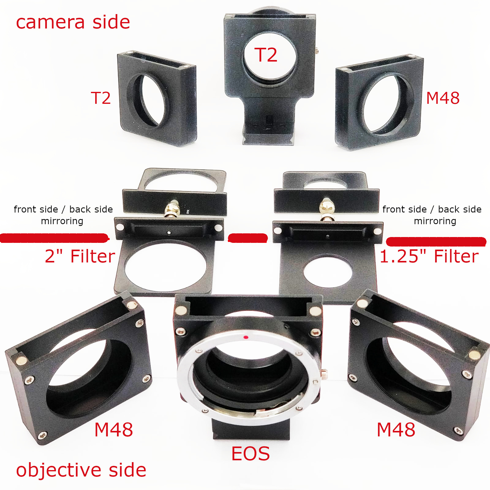 Die Schubladen Einsätze (M48x0.75 und M28x0.6 bzw. Spezialmaß auf Anfrage) sind standardisiert. Sie passen sowohl an T2, an M48 als auch ans EOS Bajonett LACERTA-Schubladengehäuse!