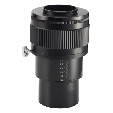• Arbeitsabstand ist von 55 mm bis 80 mm einstellbar. Kamera kann aufgeschraubt bleiben.