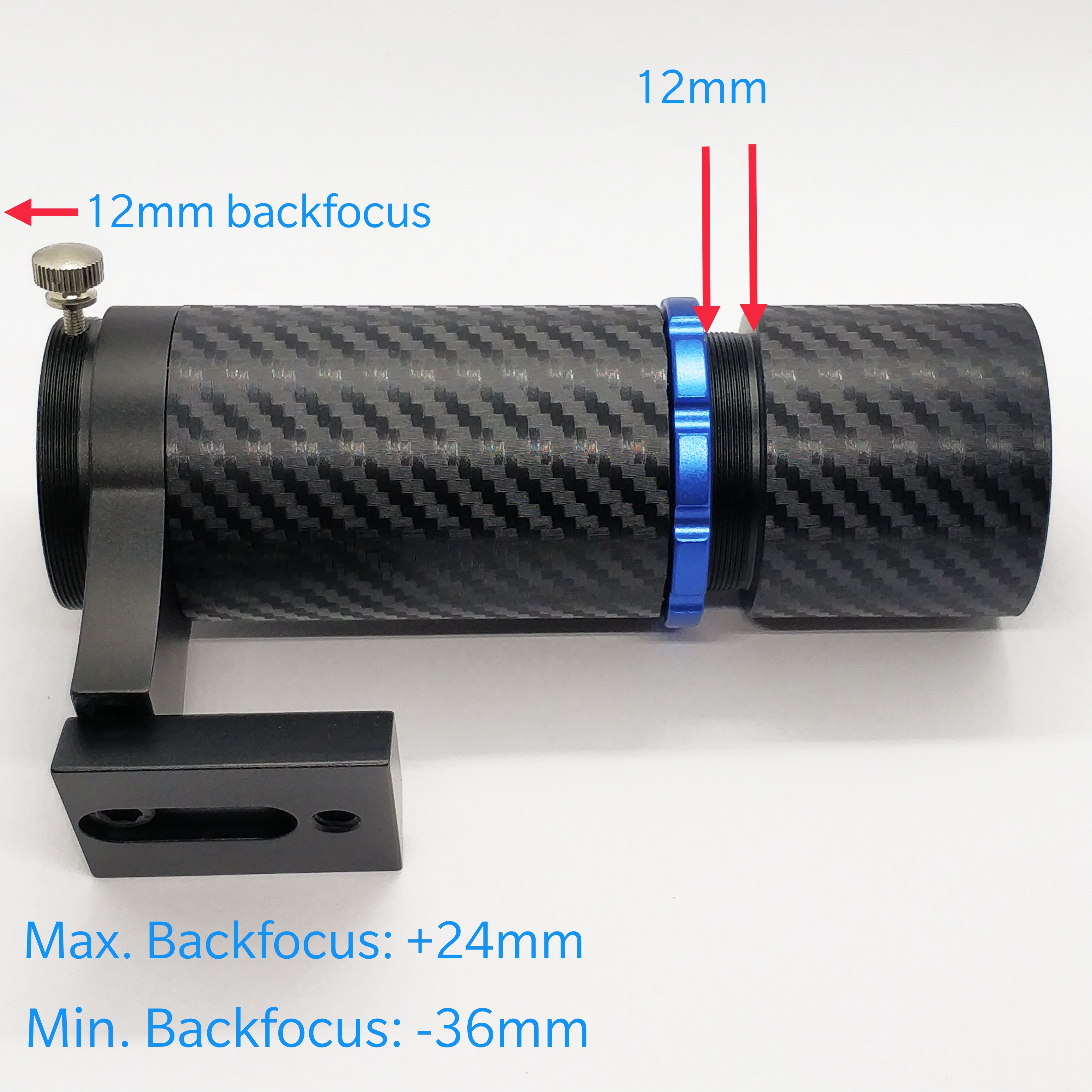 Der Guidescope kann mit praktisch ALLEN Guidekameras fokussiert werden, wo der Auflagemass zwischen +24mm (plus)  und -36mm (minus) liegt.
