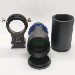 Brennweite 130mm, Gewicht 260g. Die Basis ist kompatibel mit den SkyWatcher Sucherklemmen.