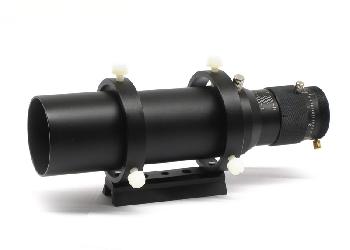 50mm Helical GuideScope, mit 20mm einstellbarer Verlängerung und nicht-rotierendem Helical Microfokus, Verstellweg 32mm, 1,25" und T2 Anschluss, mit justierbarer Halterung und Schiene für Sucherschuh