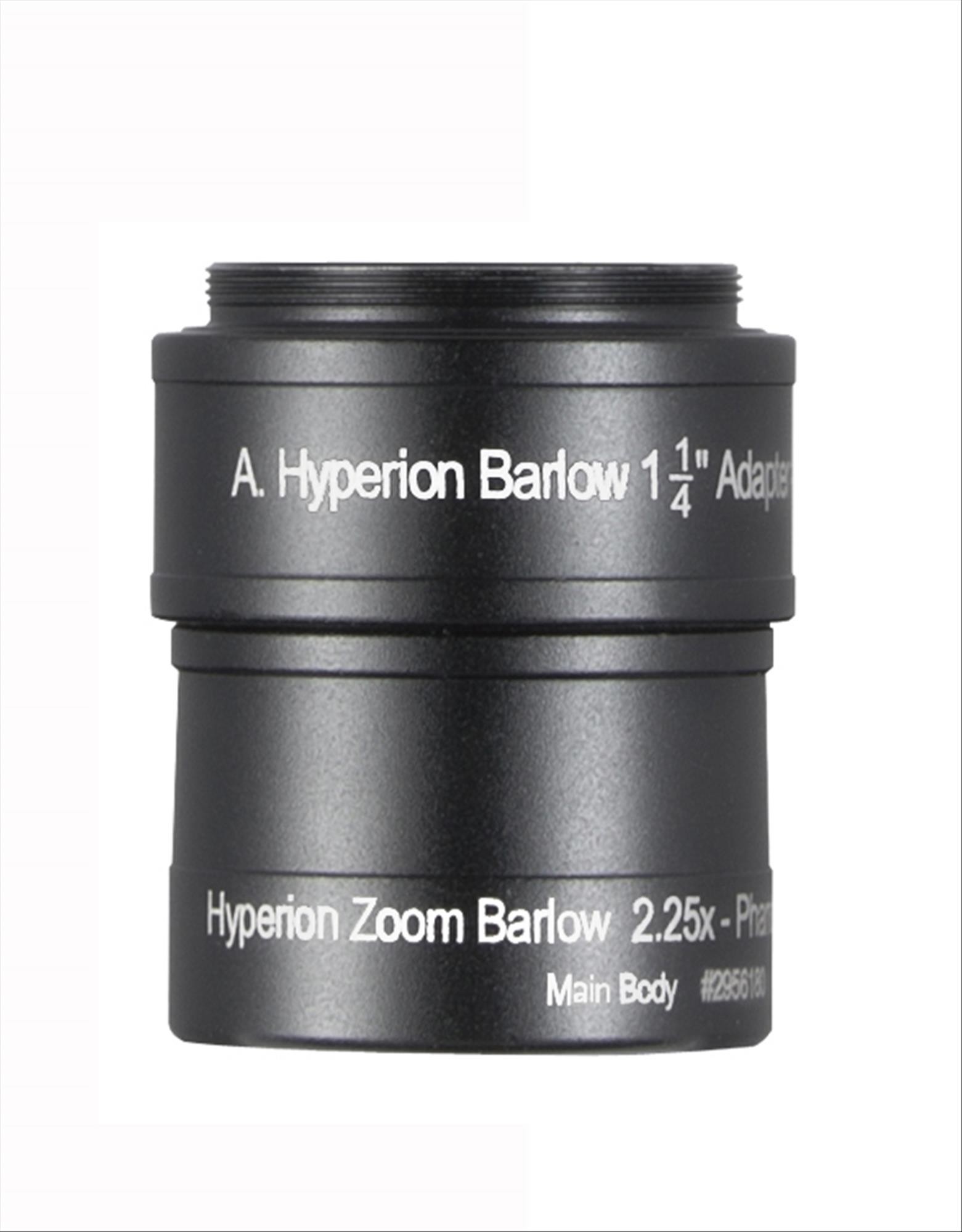 Die Baader Hyperion Zoom Barlowlinse wurde speziell für dies Hyperion Zoom Mark Okulare konzipiert. Aus dem normalen Brennweitenbereich von 8 - 24 mm des ClickStop Zooms ergibt sich durch Adaption der Barlowlinse ein Brennweitenbereich von 3,6 bis 10,5 mm mit hervorragender Abbildungsleistung für die hochaufgelöste Sonnen-, Mond-, Planeten- und Doppelsternbeobachtung.