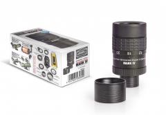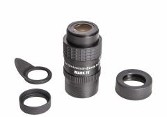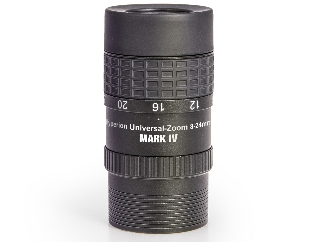 Auch Bestseller können verbessert werden: Unser beliebtes Hyperion-Zoom-Okular ist nun in der vierten Generation verfügbar und noch wesentlich vielseitiger geworden. Das Okular wurde mit 290 Gramm um 80 Gramm leichter als der Vorgänger, um ein möglichst geringes Gewicht am Binokular zu bieten. Ebenfalls sehr wichtig für die Verwendung am Binokular sind der optimierte Außendurchmesser von 55mm (3mm schlanker als Mark III) sowie die abnehmbare Augenmuschel und die sanfter gestaltete Clickstop-Rastung bei 8/12/16/20 und 24mm. Nur so kann man am Binokular sofort auf die jeweils richtige Vergrößerung für beide Augen zoomen. Der Zoom-Mechanismus und die Kurvenbahnen wurde umgestaltet, um auch bei großer Kälte leichtgängig zu bleiben, dabei wurde auch die Homofokalität der verschieden Brennweiten noch besser als bei allen Vorgängern.
