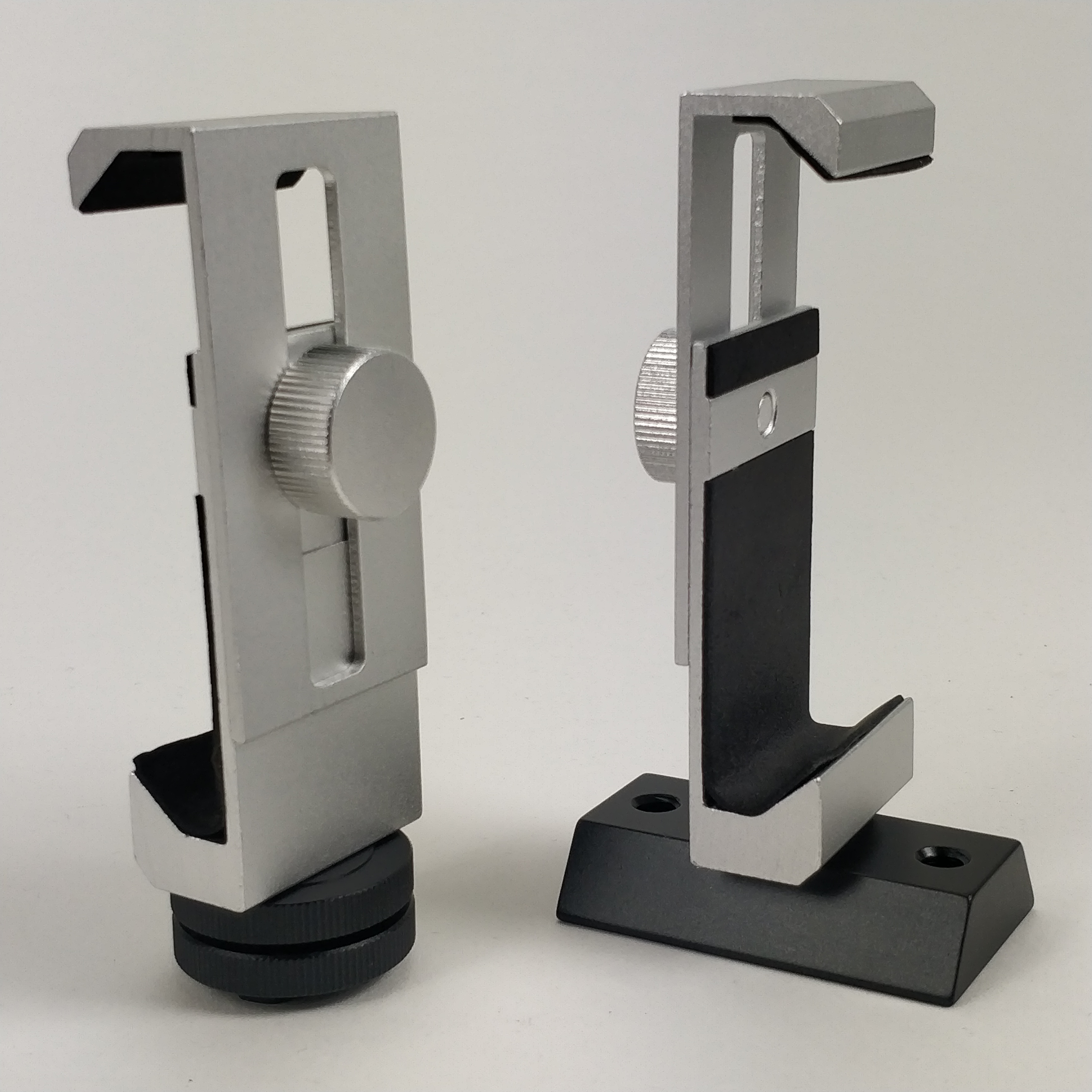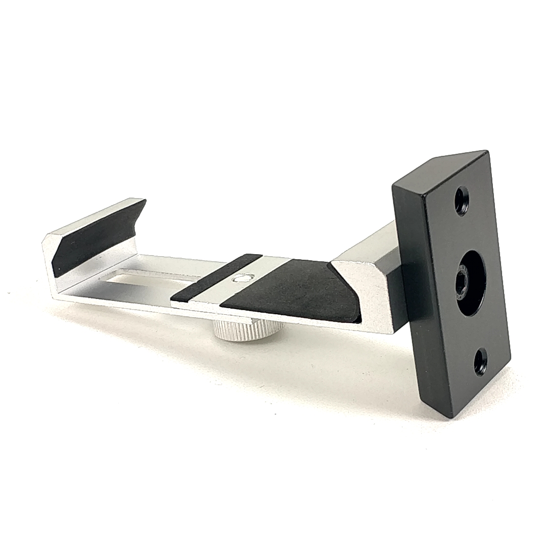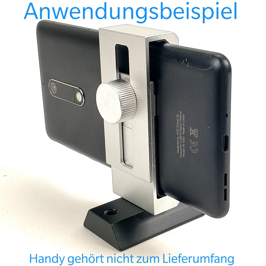 Endlich eine stabile Handyhalterung ganz ohne Kunststoffteilen, welche Ihr Mobiltelefon sicher hält. Die Fixierung passiert durch einen einzigen Schraube. Die sandgeblaste Alufläche an der hinteren Schiereinheit sorgt dafür, dass der Abstand nicht nachlässt, der gummierte Griff hält die Handy rutschsicher fest.