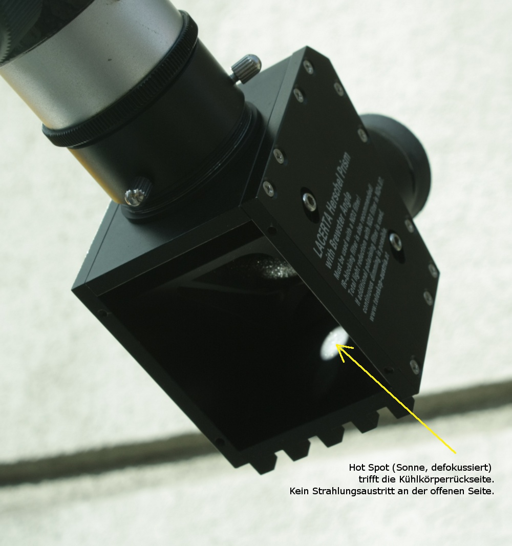 - Der Streulichtanteil der durch die Öffnung kommt, ist gegen die Sonne aus dem Teleskop verschwindend gering