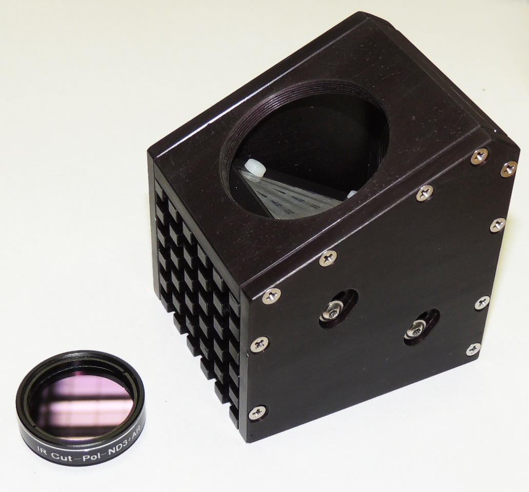 ACHTUNG: Herschel-Prismen allgemein sind noch relativ hell - ein ND3 Filter ist verpflichtend zu verwenden! Stufenlos dimmen ist erst möglich, wenn zusätzlich ein Polfilter verwendet wird. Da aber viele Astrofreunde diese beiden Filter bereits besitzen, bieten wir das Gehäuse mit Prisma auch "solo" an. Bitte beachten Sie die "empfohlenen Produkte" unten!