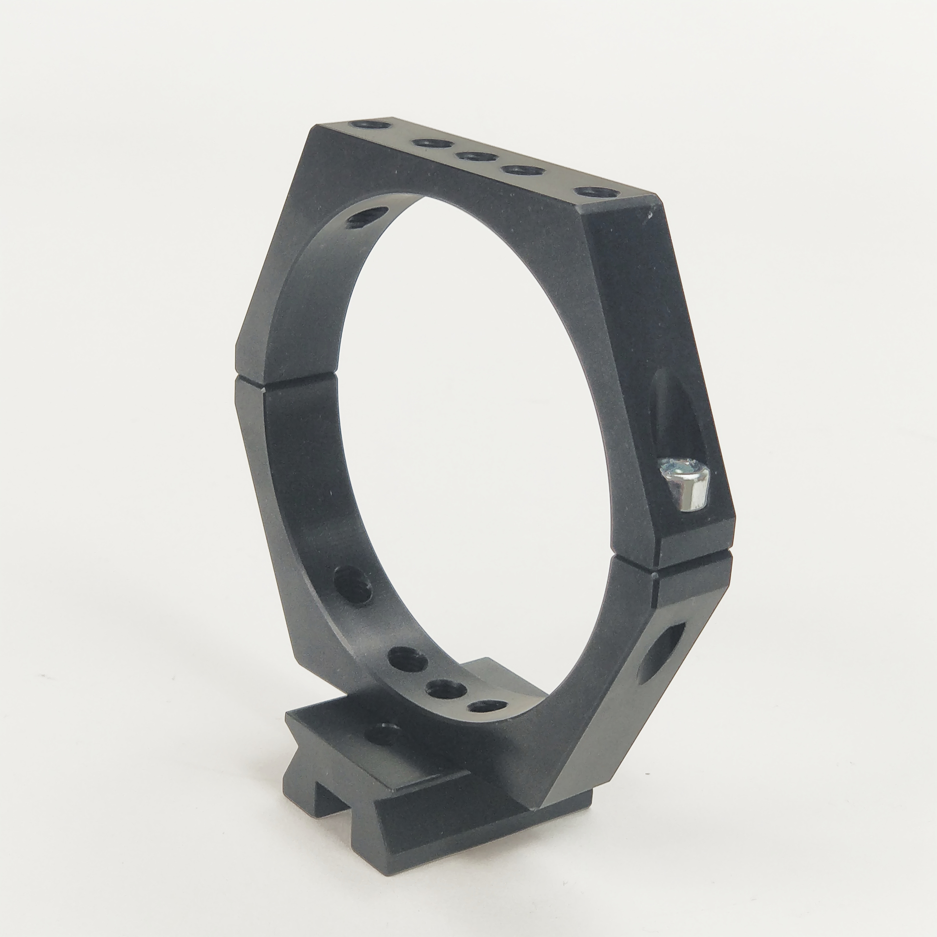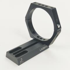 Diese Halterung passt zu gekühlten Astrokameras mit 86mm Gehäusedurchmesser (z.B. viele ZWO oder ähnliche Modelle). Als montierungsseitige Befestigungseinheit wird eine Verbindung zur Arca Swiss, oder standard Sucherschuhe oder Vixen/Celestron/SW Prismenschiene (alle 3 erhältlich in verschiedene Längen) montiert. Dadurch kann die Kamera direkt an Fotostative, Sucherschuh oder Prismenklemme befestigt werden - wie es zu Ihren Equipment am bestens geeignet ist. Die Halterung ist 15mm breit - breit genug um die Kamera halten zu können, jedoch schmall genug um die seitliche Öffnung(en) für die Kühlung frei wirken lassen. Mit einem optionalen Invers- (oder negativ-) Kameraadapter können Objektive von DSLR oder MILZ Fotoapparate angeschlossen werden.