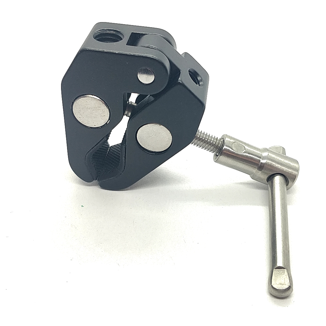 Das angeklemmte Bauteil lässt sich durch 3/8" und 1/4" Gewinde mit Verschiedenen Zubehör (Kugelkopf, Mobiltelefonhalterung usw...) erweitern.