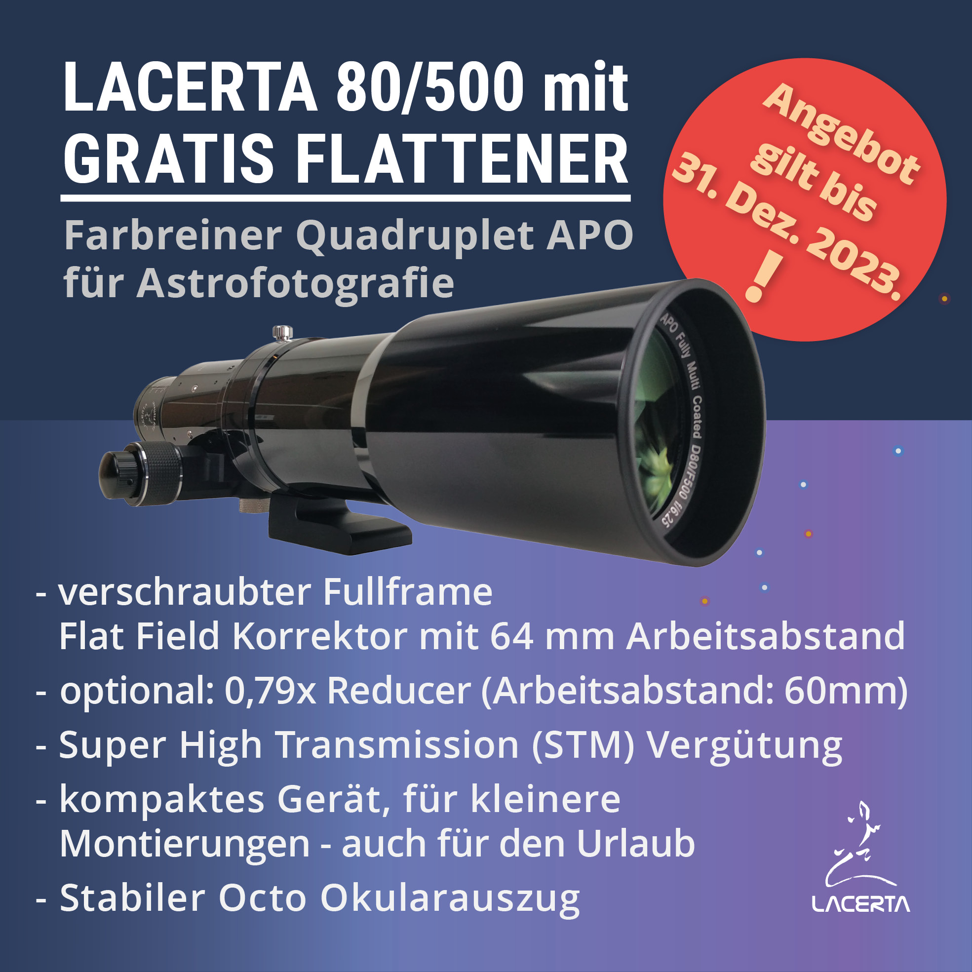 LFF-universal | LACERTA Universal Field Flattener für diverse ED und Triplets, mit 55-76mm Arbeitsabstand | 219.89 EUR | |