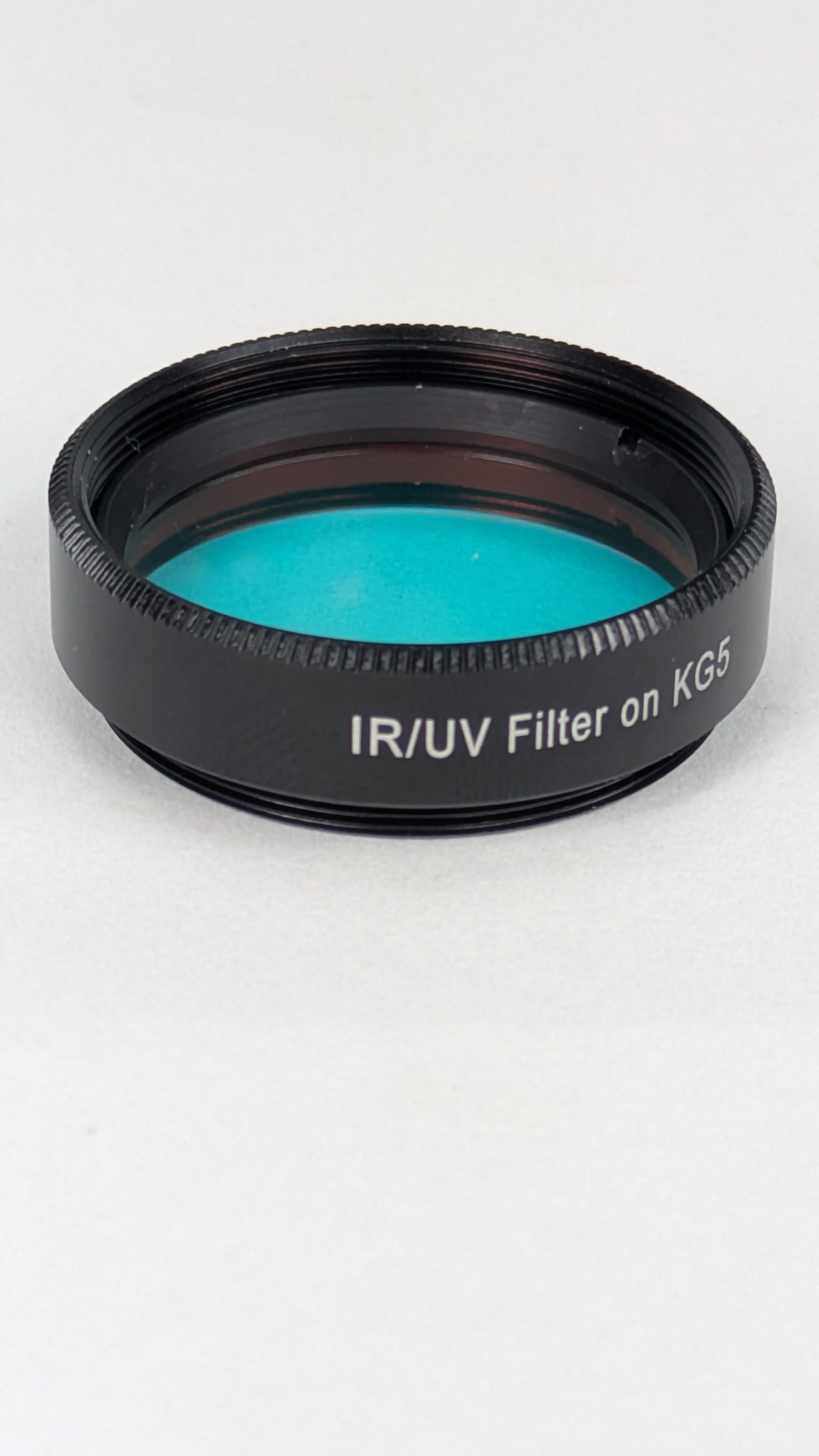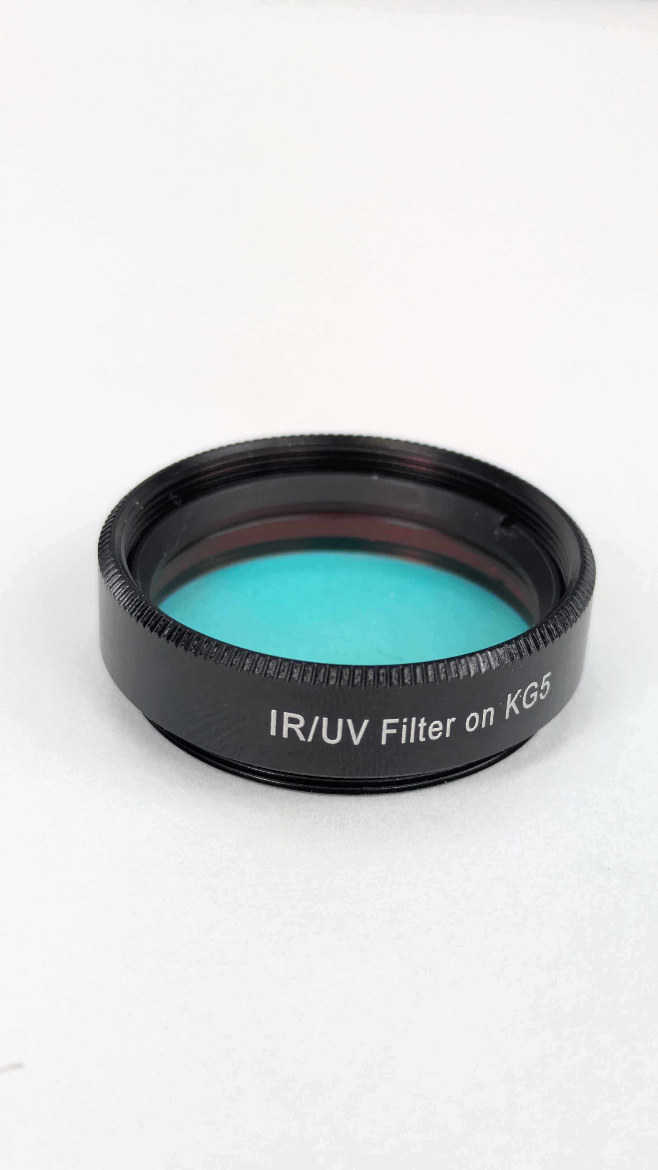 KG5 bedeutet, dass selbst das Glasmaterial die IR-Strahlung mindestens auf hundertstel, ganz bis 5000nm blockt! Mit einer zusätzlichen IR/UV Beschichtung bietet es der bestmögliche Schutz gegen die Wärmestrahlung der Sonne und auch gegen der Streulicht in IR und UV Bereich. Und zwar sowohl visuell, als auch fotografisch! Der Filter ist sogar bei Mikroskopen mit Halogenbeleuchtung gegen Erwärmung des Präparates einsetzbar.