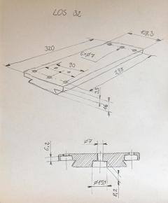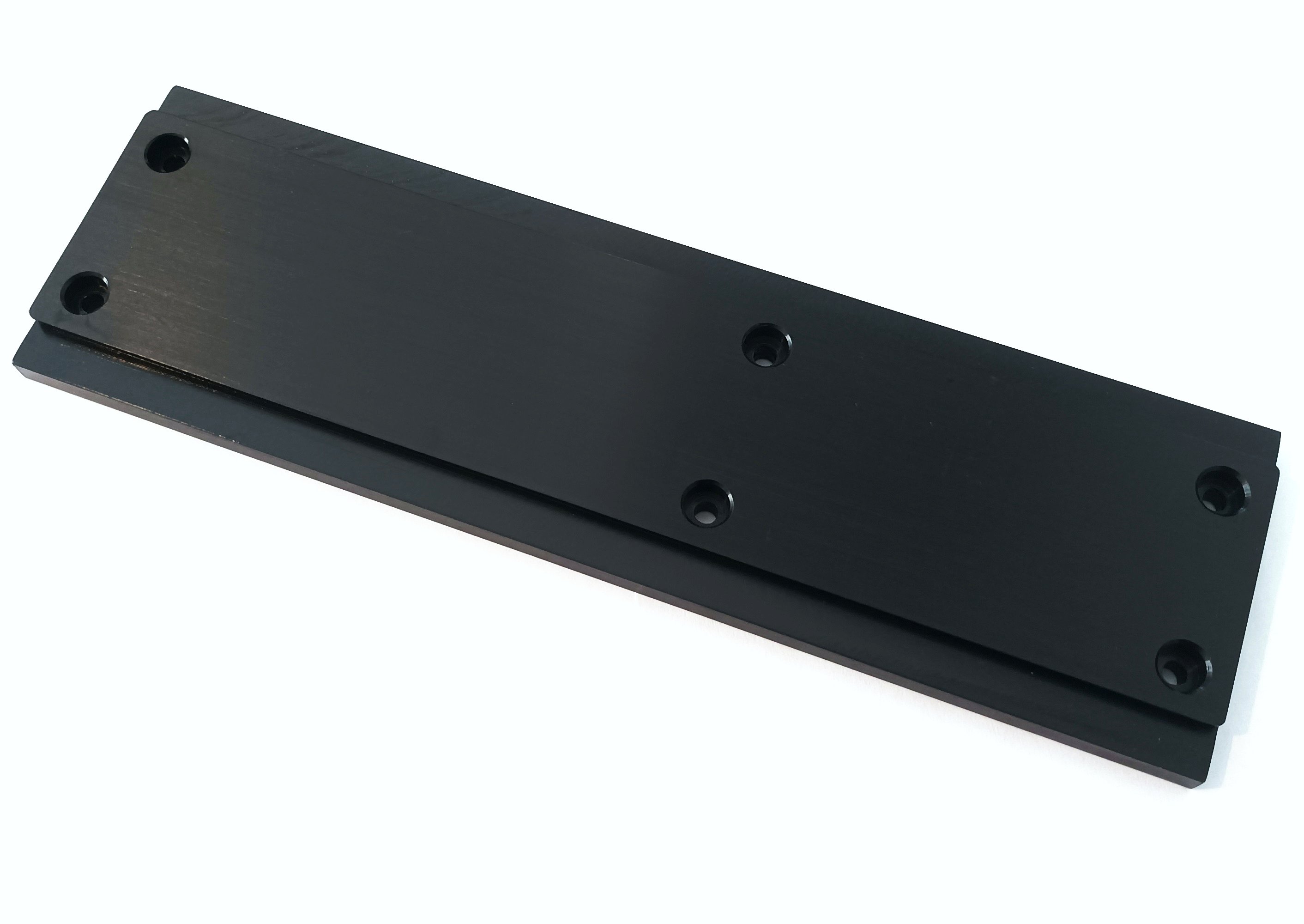 Massive Losmandy-Prismenschiene mit 125 + 185 = 310mm (länglich), bzw. 50mm (quer) Lochabstand, Gesamtlänge ist 33,5cm, Gesamtbreite ist 10cm, Plattenstärke 15mm.